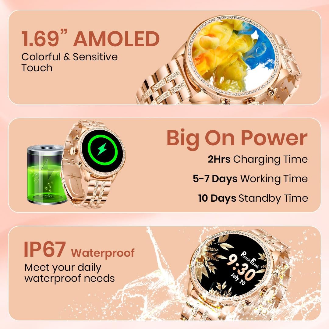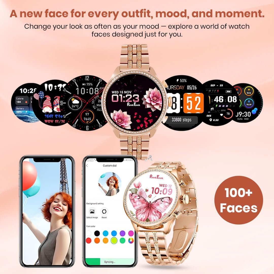 PunnkFunnk Genquella Smartwatch for Women with Bluetooth Calling, 1.69″ HD Touchscreen, Heart Rate SpO2 Sleep Tracker, 100+ Sports Modes, IP67 Fitness Watch for Android iPhone(Rose Gold)