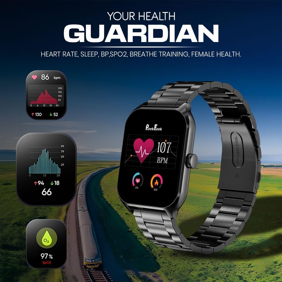 PunnkFunnk H18 Pro Smartwatch for Men & Women | 2.01″ HD TFT Display | Bluetooth Calling | Heart Rate & SpO2 Monitor | Long Battery Life | IP67 Fitness Watch with Multiple Sports Modes- (Metal Black)