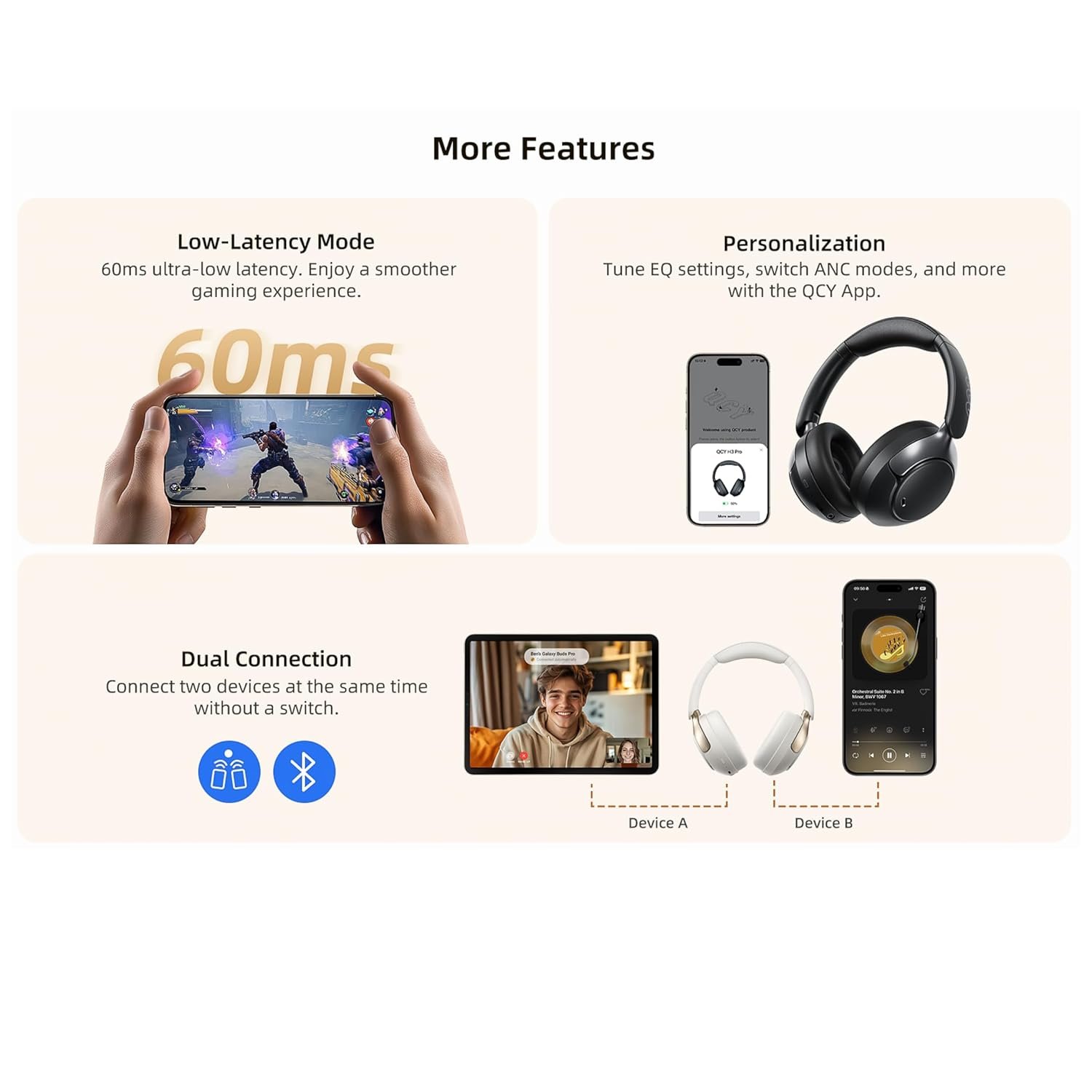 QCY H3 Pro Hi-Res LDAC ANC Headphones with Dual-Chip 40mm Titanium Drivers, 3-Mic ENC, 3D Spatial Audio, 60ms Low Latency, 55H Playtime, 10Min=2H Fast Charge, IPX4, Dual Pairing, Smart App