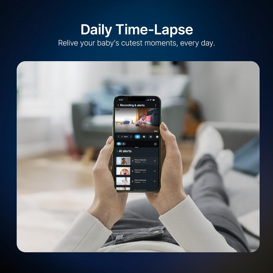Qubo 2MP Baby Cam | 1080p Full HD Wi-Fi Baby Monitor | Cry Detection, Sleep Tracking, 2-Way Audio | Mobile App Control | NightPulse Vision | Cloud & SD Card Recording
