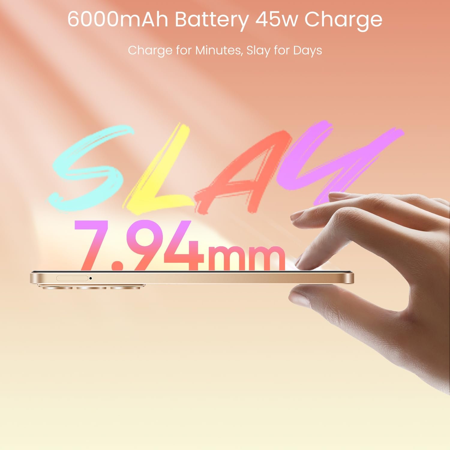 Long-Lasting Power:A massive 6000mAh battery paired with 45W SuperVOOC fast charging keeps you powered up all day and quickly refills your device.