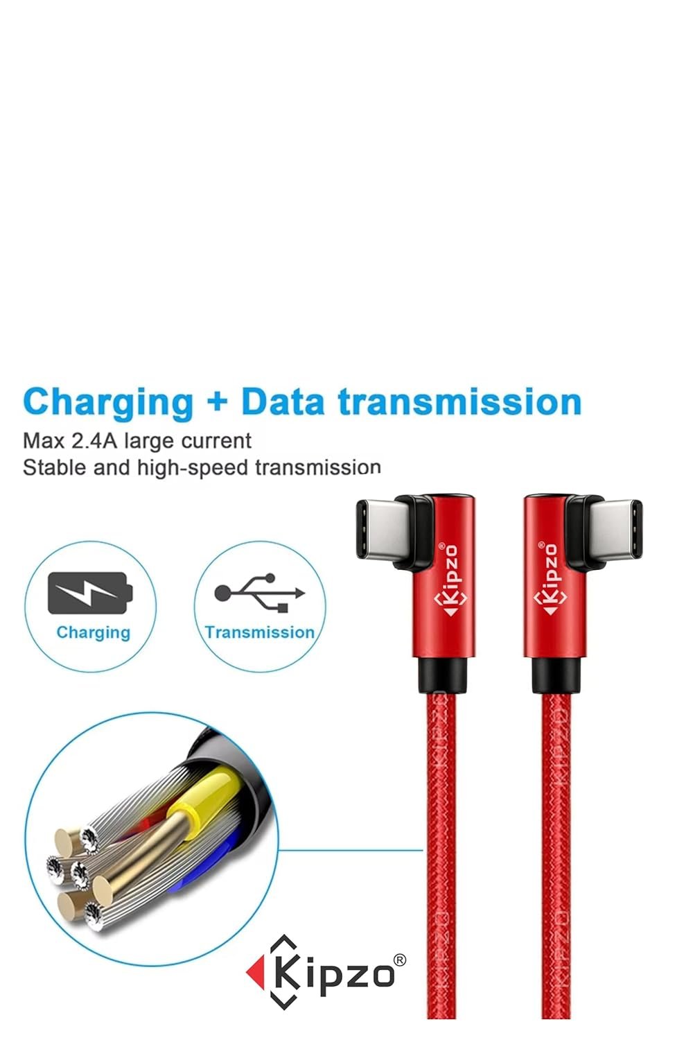 The KIPZO 90ยฐ Nylon Braided Type-C to Type-C cable is your perfect companion for fast charging and seamless data transfer. Designed for modern devices such as the Samsung S22, S22 Fold, S22 Flip, M34 Max, OnePlus, Pixel 4a 6a, and MacBook, this durable and efficient cable ensures uninterrupted power and data flow.