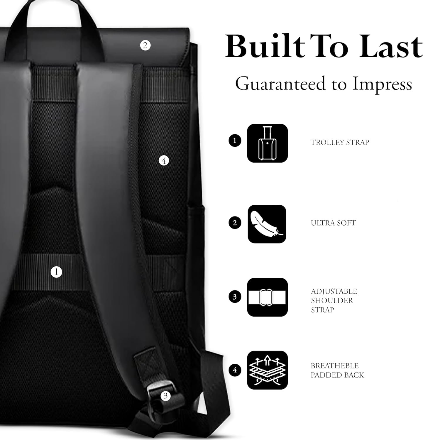 Breathable back panel ensures comfort, airflow, sweat reduction, ergonomic support for all-day wear.