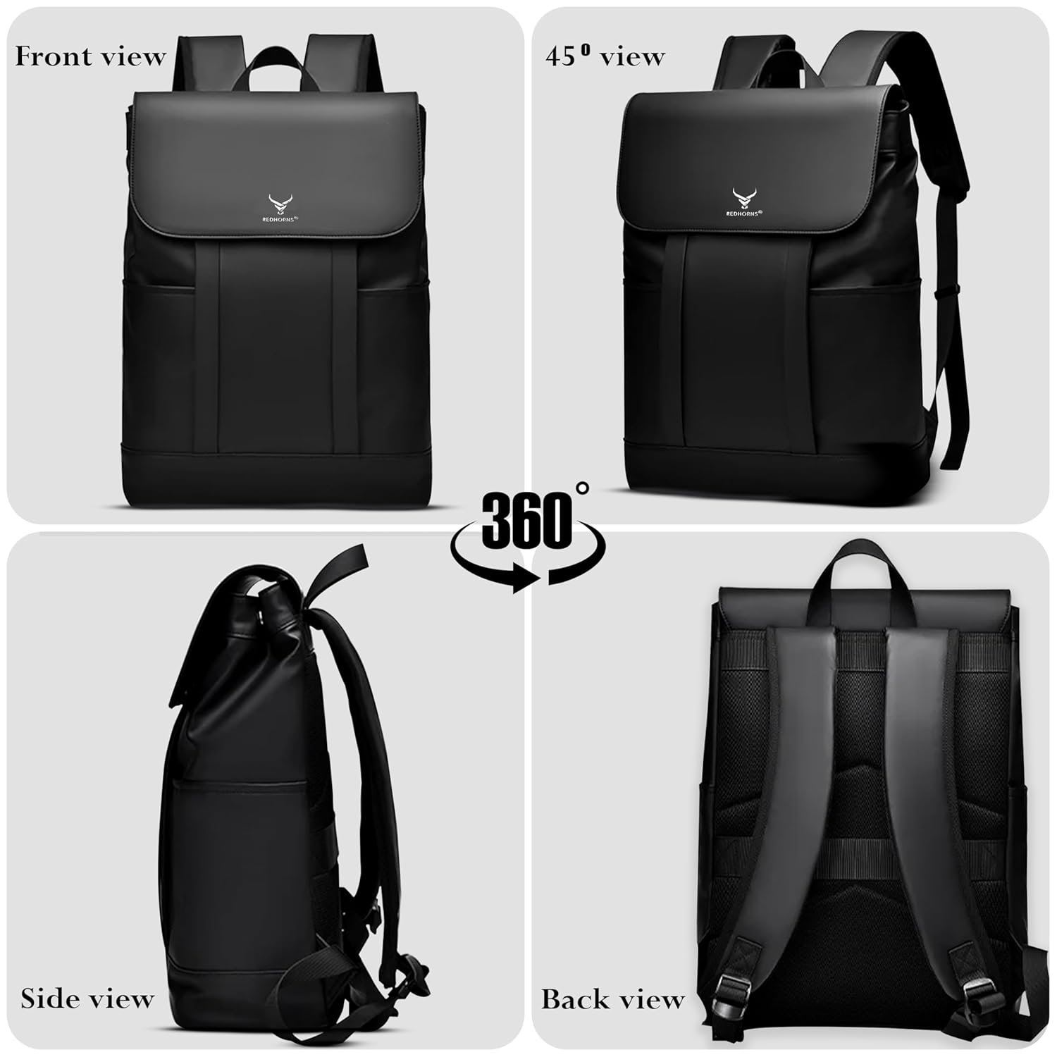 REDHORNS introduced a Laptop Backpack for men and women that is perfect for office, travel, and college use. It features a padded 15.6-inch laptop sleeve and multiple compartments. Made from water-resistant nylon inner lining and PU Leather outer material, it keeps your devices safe and secure