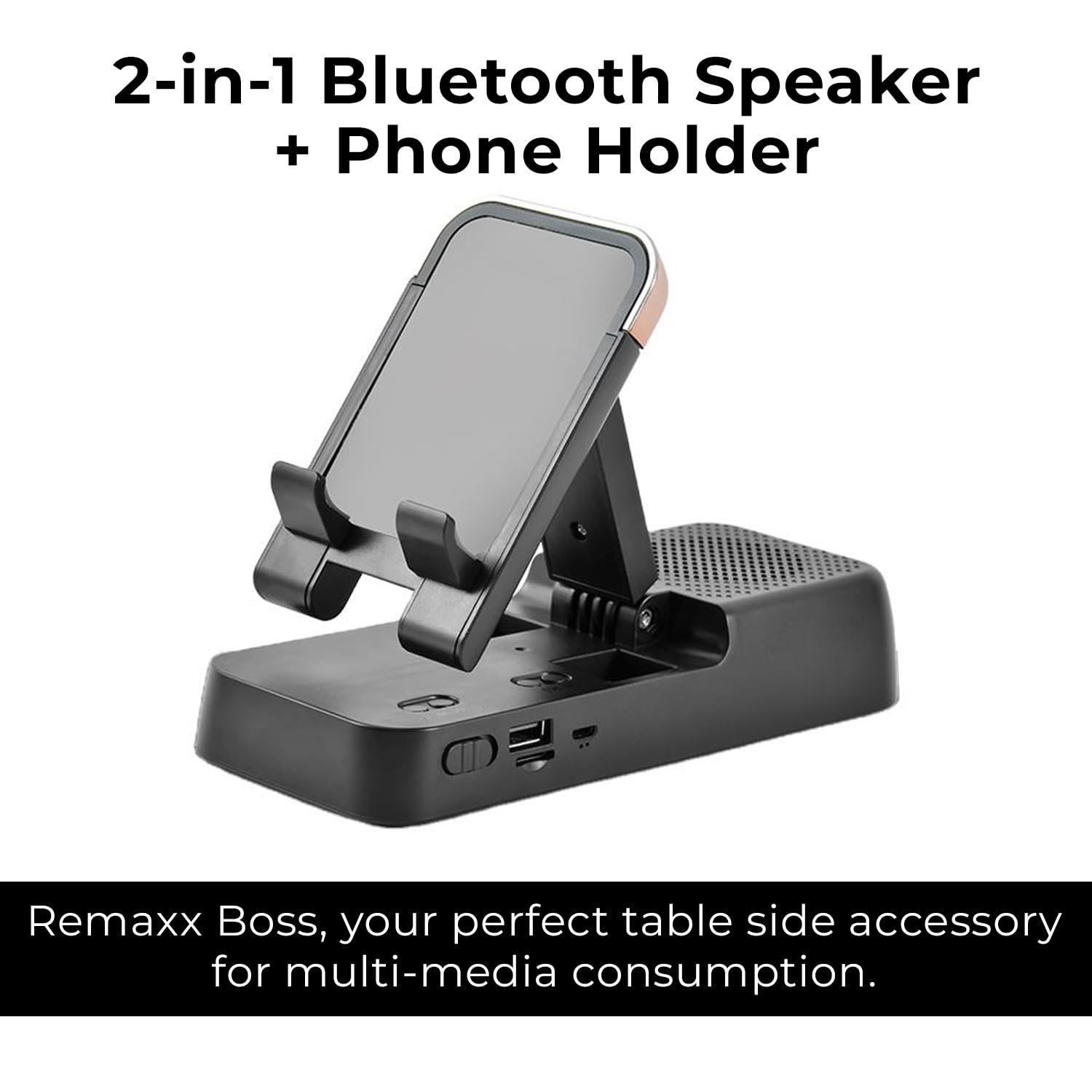 REMAXX Boss Stable and Non Slip Phone Holder with Wireless Stereo Sound Speaker Compatible with 4 to 13 Inch Phones and Tablet Volume Mode Control