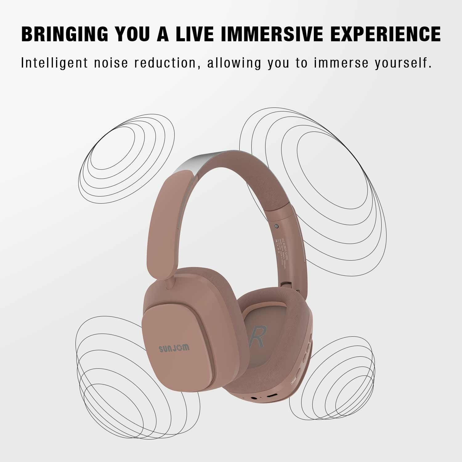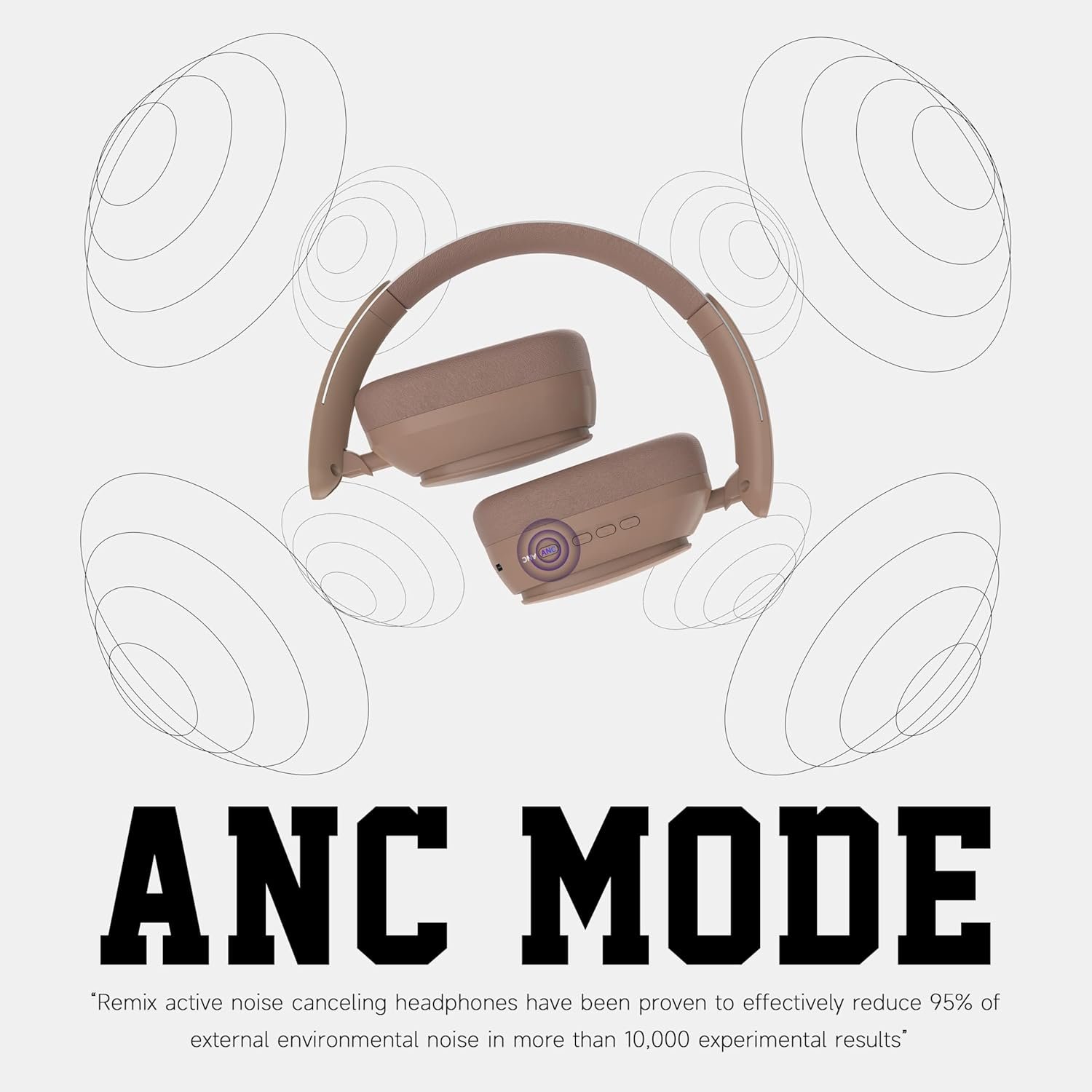 Remix 130H Playtime Wireless Over-Ear Headphones, ANC/ENC Active Noise Cancelling, Foldable Rotatable Lightweight Bluetooth Headphones with Microphone Type-C for Call Travel Sports (Pink Brown)