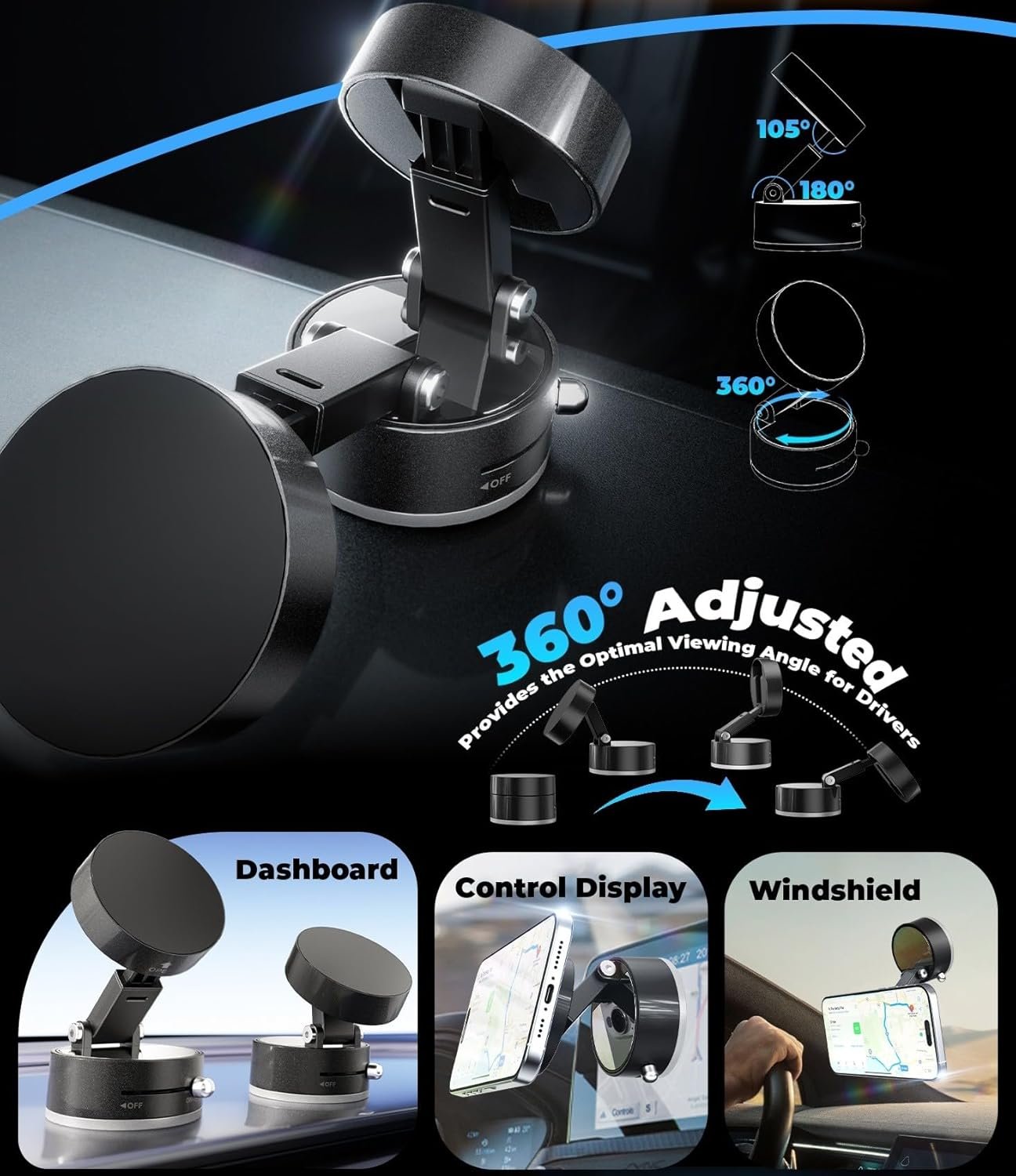 Ultra-Strong Magnetic Vacuum Grip – Equipped with N52 magnets and advanced vacuum suction, the RIGGEAR mount ensures a rock-solid hold on any smooth surface—perfect for cars, gyms, or showers. Compact yet powerful