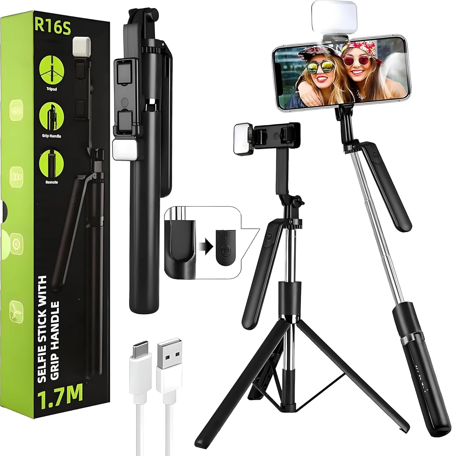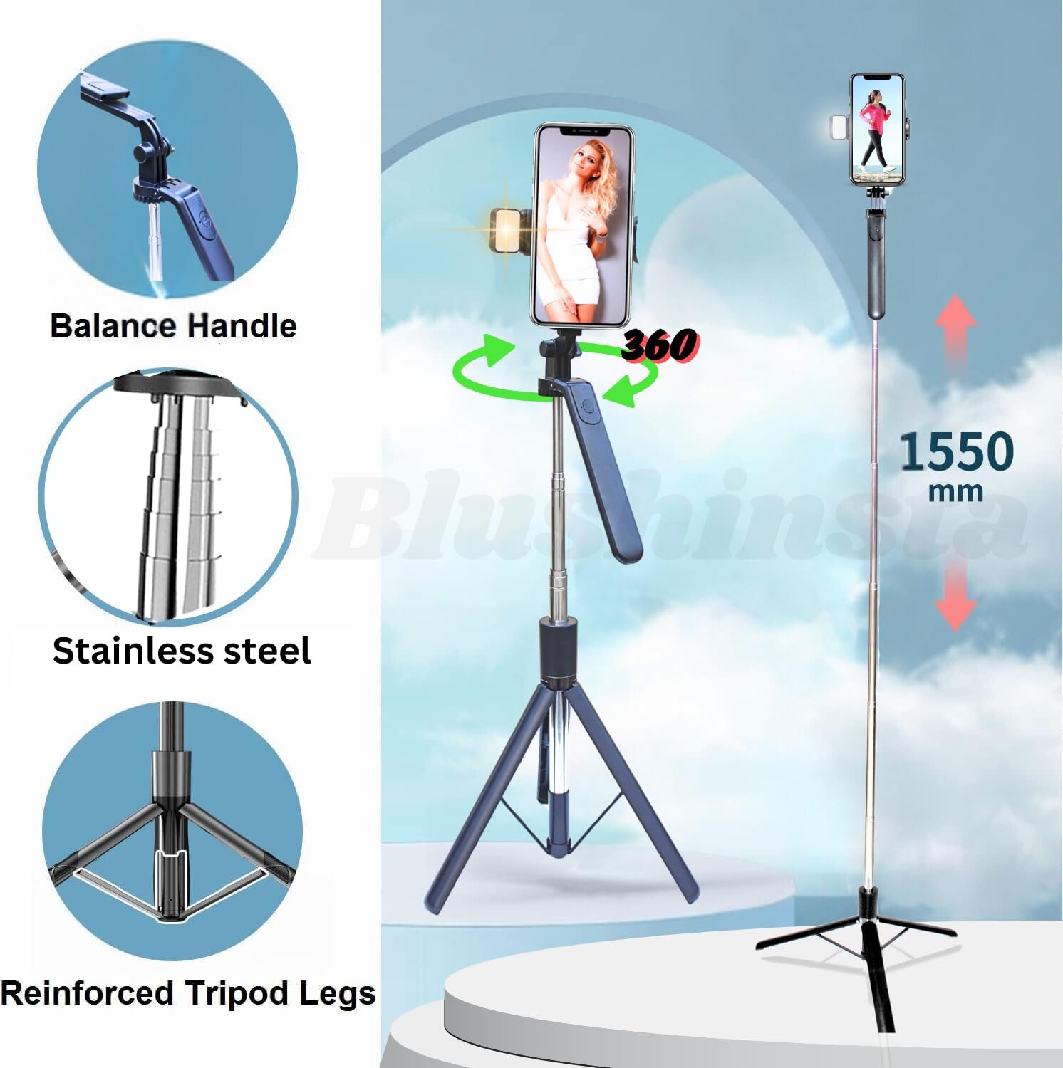 S64S Selfie Stick with Tripod and Remote Control – 360° Rotation, Full Stability, Compact Design, Compatible with Android Smartphones – Single Light