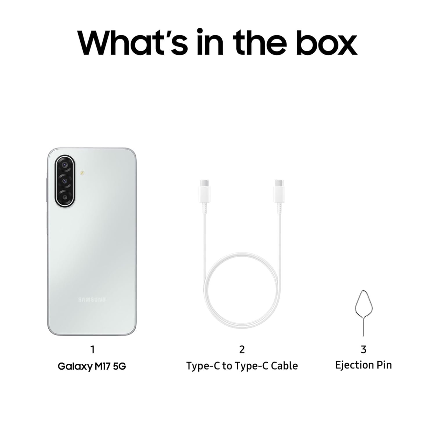 Samsung Galaxy M17 5G (Moonlight Silver, 8GB RAM, 128GB Storage)| 50MP OIS Triple Camera| Gorilla Glass Victus| IP54 Rating| 6 Gen of OS Upgrades| AI| Circle to Search| Gemini Live| Without Charger