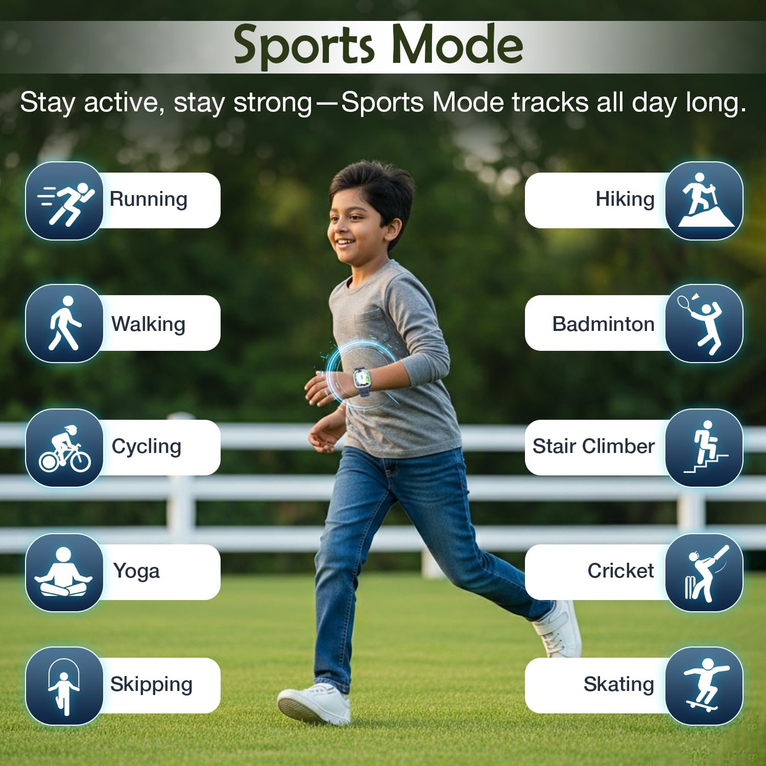 [Activity Tracker & Health Monitor]: Tracks steps and movement to help kids stay active, build healthy habits, and enjoy fitness with fun goals.