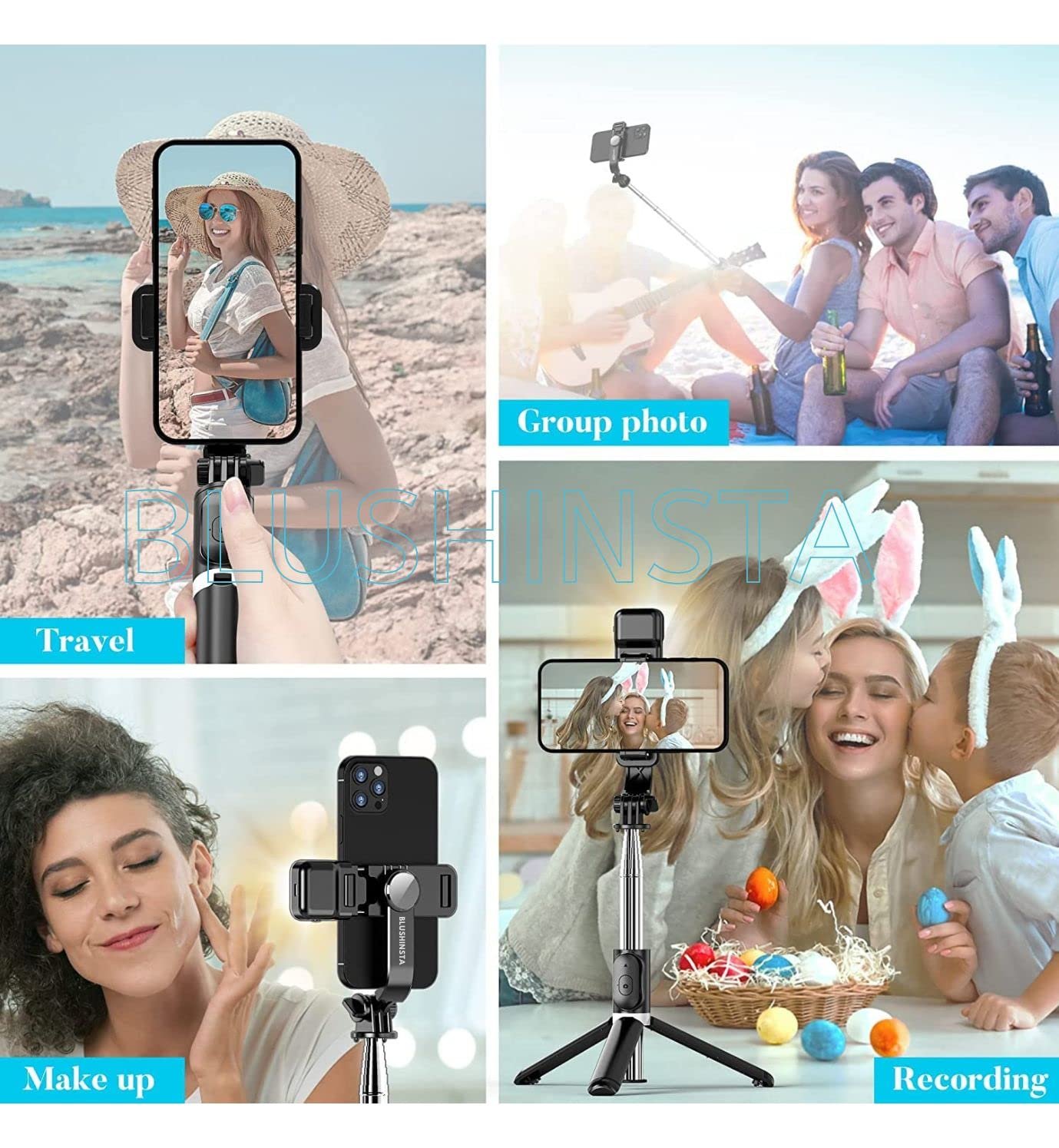 Blushinsta: Three-in-one Compact selfie stick with Wireless Remote Control and integrated with tripod, product length up to 70 cm, the range of the wireless connection can be up to 10 meters. New experience great for Selfies, Group Photos, Face-time, Life-logging, Video shooting, Social live