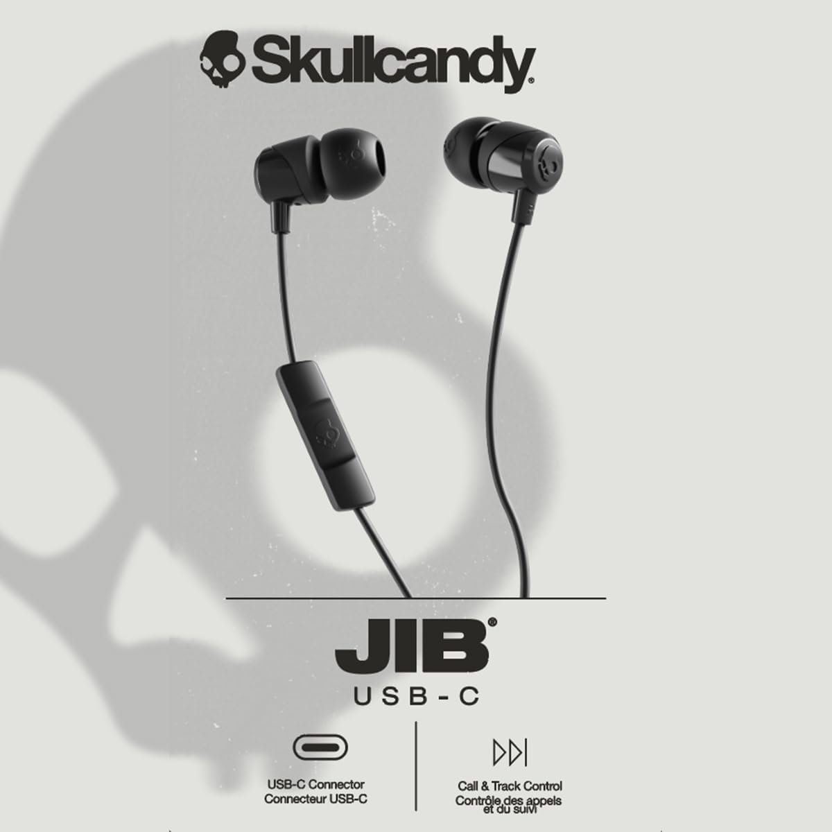 Skullcandy Jib USB-C in-Ear Earbuds with Noise Isolation, Enhanced Audio Drivers, Microphone, Call and Track Control, Detachable Cable, Compatible with Smartphones and Laptops – Black