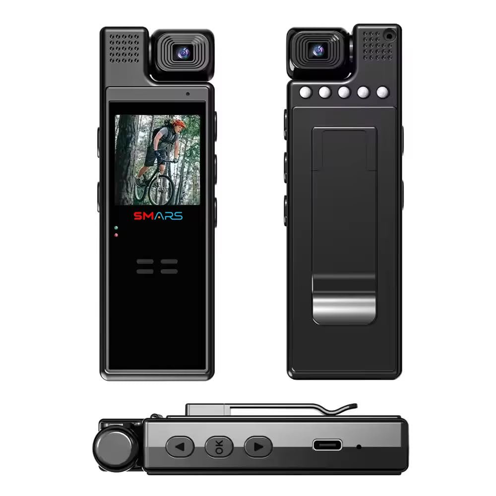 Capture life’s moments with crystal-clear precision using this sophisticated body camera. The sleek, black device features a rotatable lens design and a vibrant display screen for immediate playback. Perfect for security personnel, law enforcement, or personal documentation needs, this camera combines professional-grade recording capabilities with user-friendly operation. The compact unit includes convenient control buttons, a sturdy clip-on mechanism, and a durable construction built to withstand daily use. Its slim profile makes it comfortable to wear, while the high-definition lens ensures detailed footage in various lighting conditions. The device comes with USB connectivity for easy data transfer and charging. The SMARS interface provides straightforward navigation through settings and recorded content. Ideal for those requiring reliable video documentation in dynamic environments, this body camera delivers both functionality and durability in a professional package.