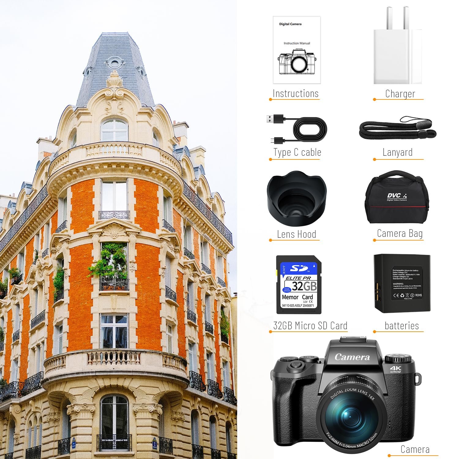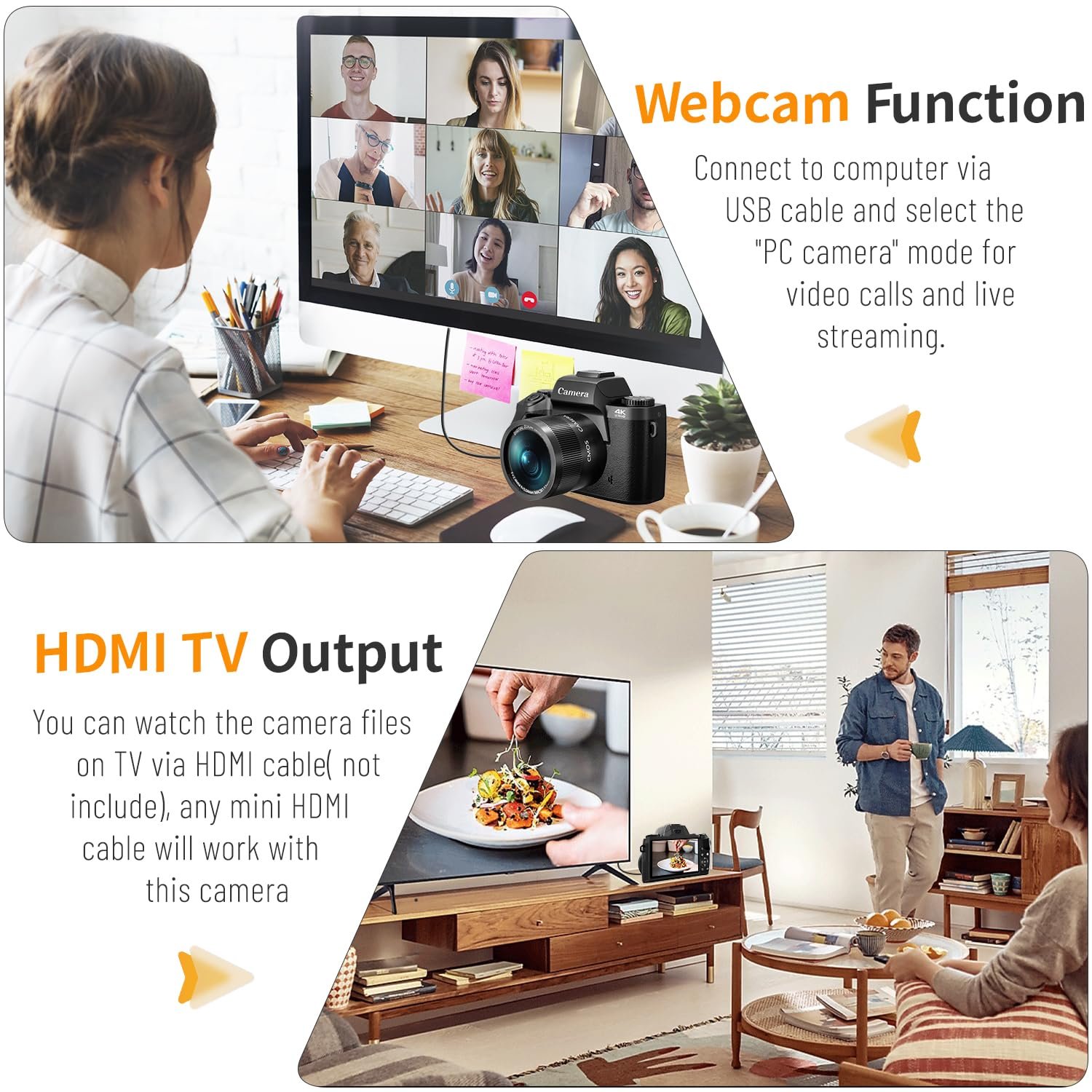 【 Vlogging Record & Webcam】- This vlogging camera for photography has 2s/5s/10s timing for single or continuous shooting. The 2.8 Inch IPS LCD Display provide clear and vivid video as a webcam live broadcast or shooting vlog. The pause function allows you to Pause when recording or playing vlog video, saving you time in editing video.