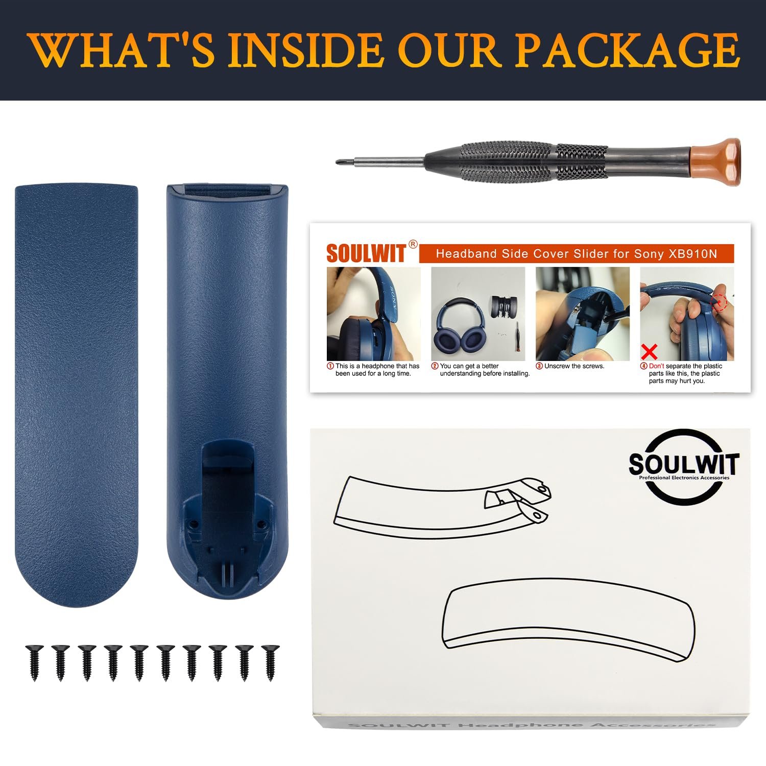 SOULWIT Headband Side Cover Slider Outer & Inner for Sony WH-XB910, XB910N Extra Bass Noise Cancelling Headphones(Do Not Fit WH-XB900N), Replacement Head Band Repair Part Accessories Kit – Blue