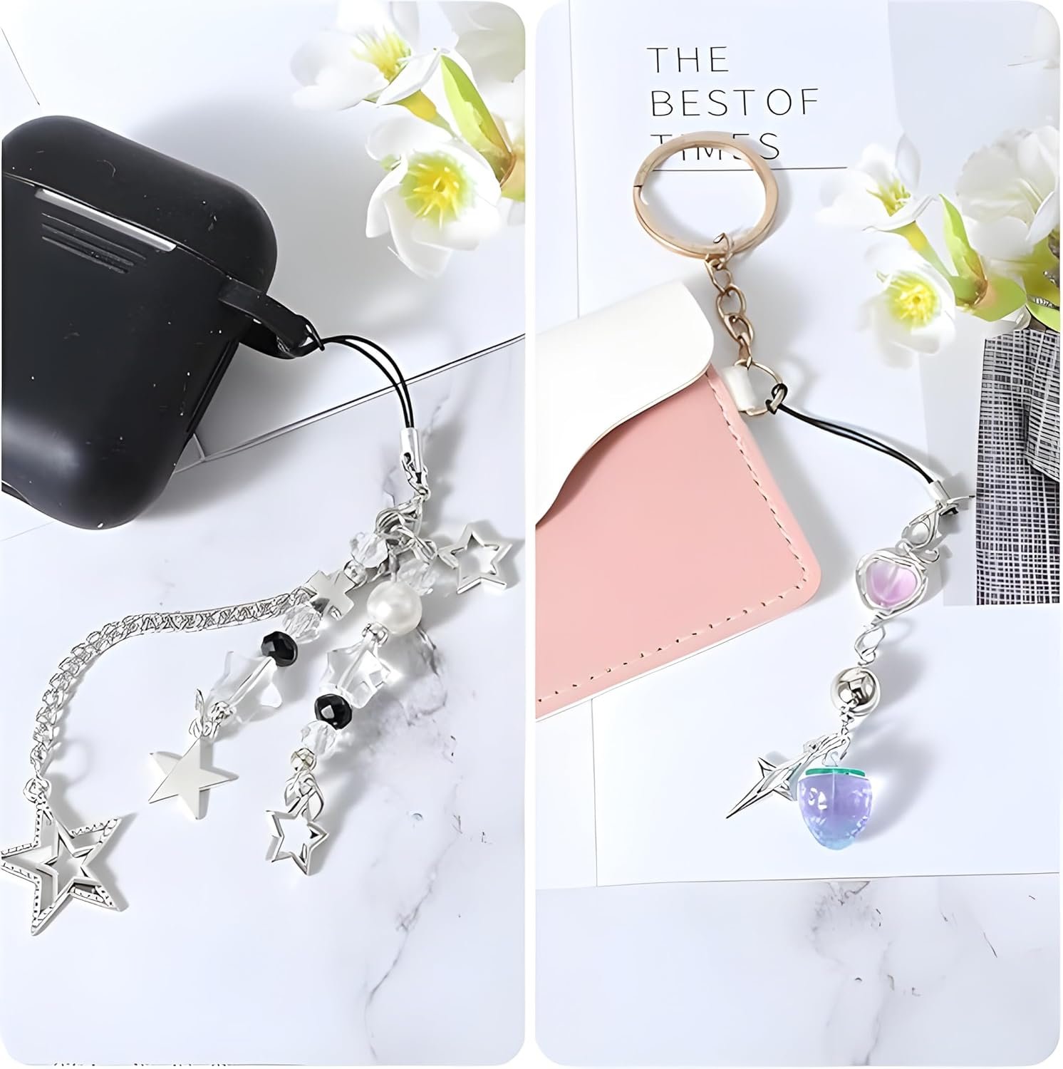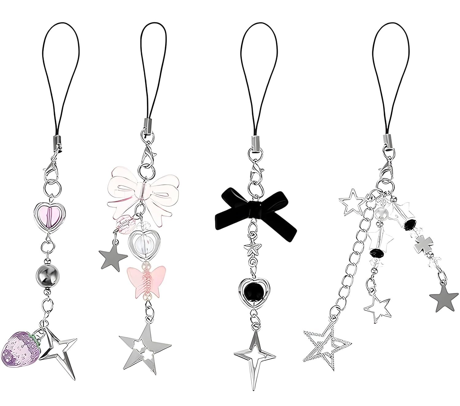 I bought this set thinking they’d just be cute add-ons, but they turned out way nicer than expected. Each charm has its own personality — the black bow looks classy, the star-chain one feels elegant and sparkly, the pink butterfly is sweet and girly, and the purple heart adds a fun pop of color.What I really liked is that they don’t feel flimsy at all. The beads are clear, the metal stars shine beautifully, and the whole set feels thoughtfully made.It’s a small thing, but these charms genuinely make my phone feel more “me,” and they add a little happiness every time I see them. A really lovely set — worth it!