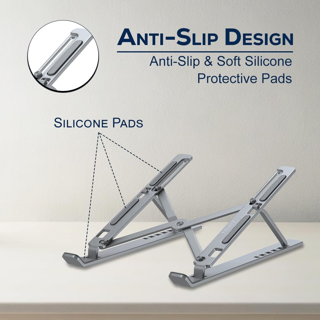 TEMPT Elevate Buddy Portable Laptop Stand with Adjustable Height, Foldable, Compact, Anti-Slip Silicone Rubber Pads, OverHeating Protection for iPad, Galaxy tab, Laptops & MacBooks