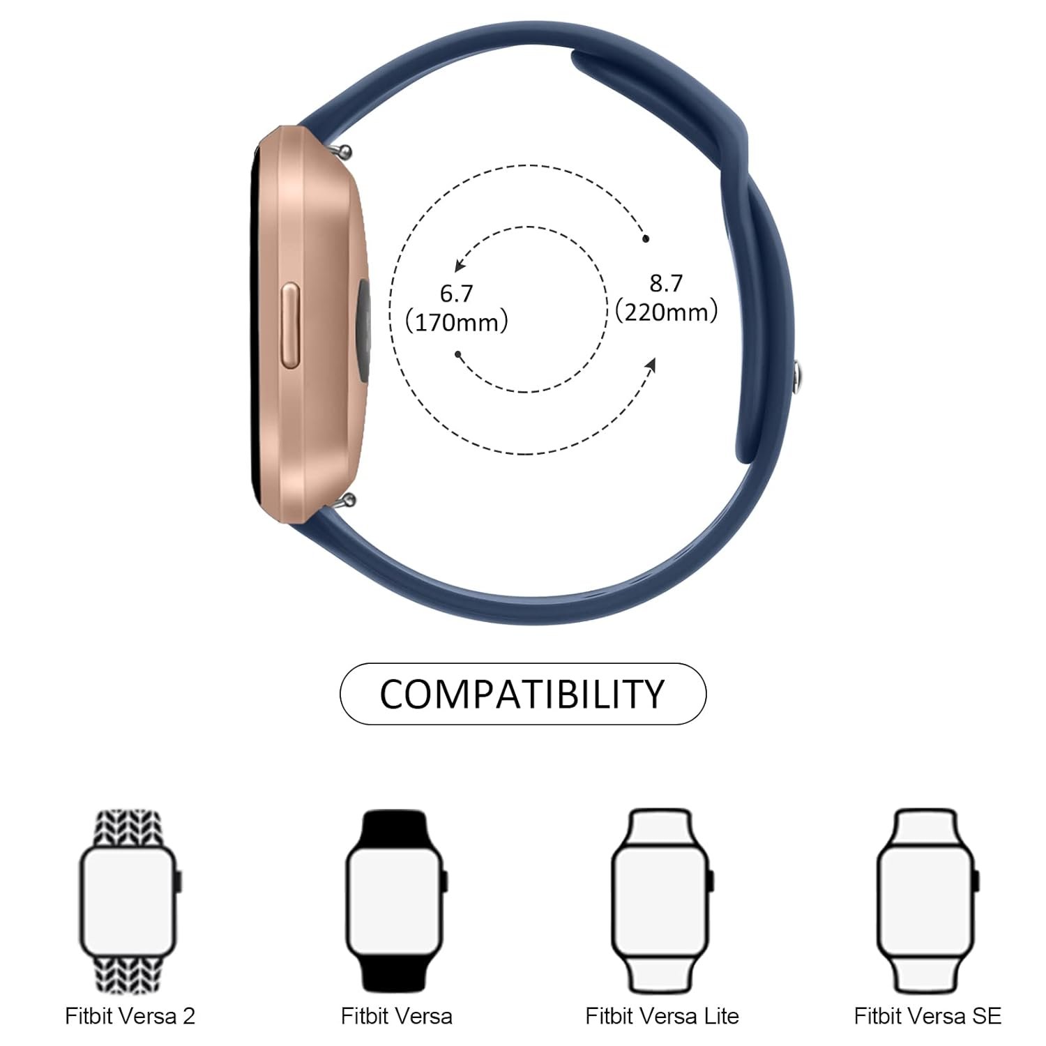 Tobfit Silicone Band for Fitbit Versa 2 Fitness Tracker, Soft Quick-Release Sport Strap for Fitbit Versa SE Fitness Tracker (Watch Not Included), Wristband with Metal Buckle for Men Women