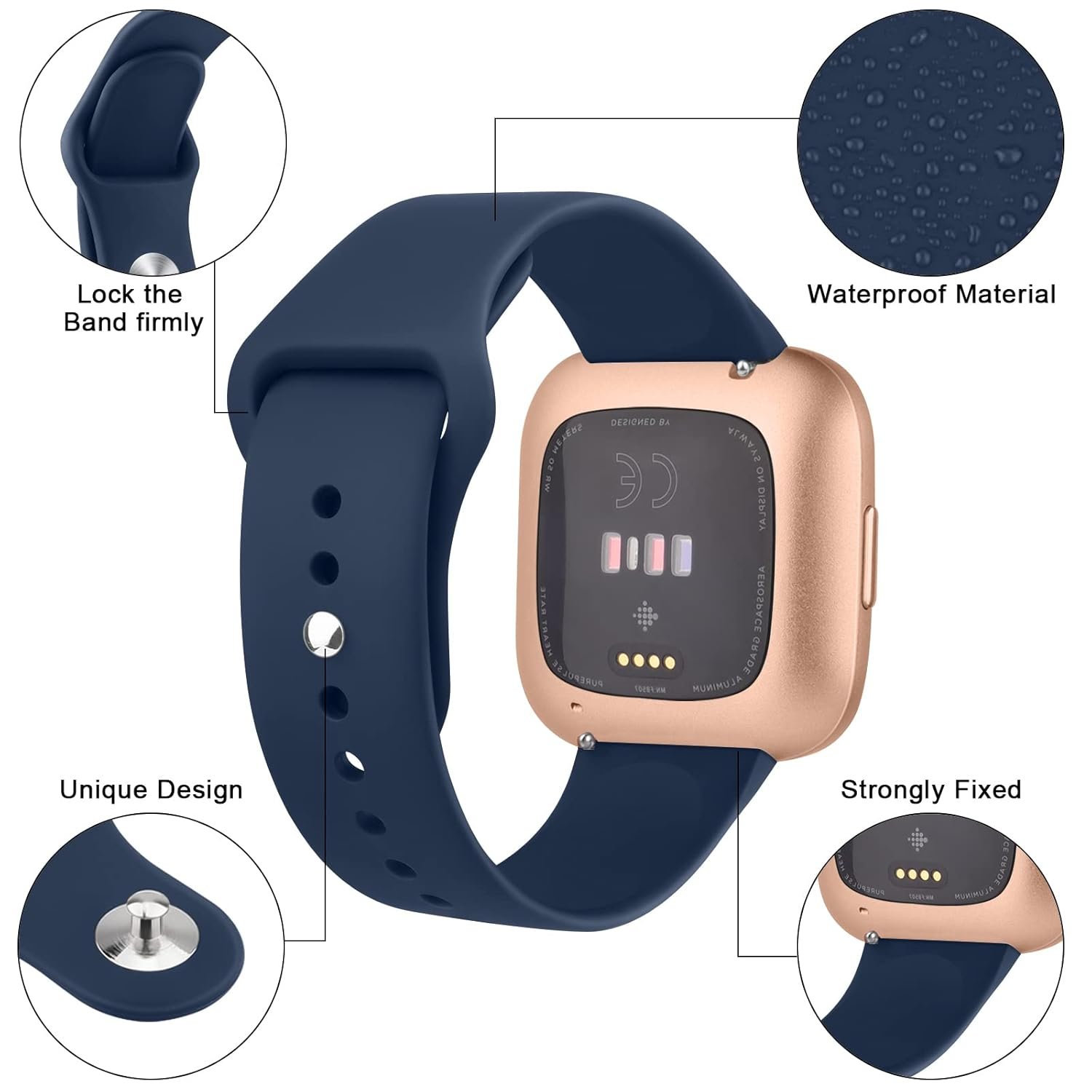Slide the built-in quick-release pins and lock into the notch of the smart watch precisely.