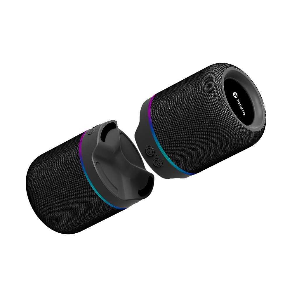 Toreto Twin Magno Magnetic Wireless Bluetooth Speaker 16W | Detachable Dual Speakers, RGB Lights, 6H Playtime, TWS Stereo Mode, Type-C Charging | Portable Wireless Speaker (Black)