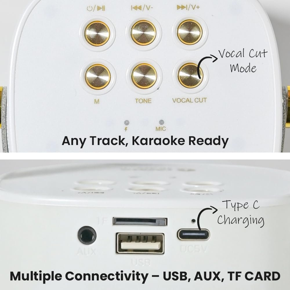 Long Battery Life for All-Day Fun – Don’t worry about the party stopping early—this speaker has a long-lasting battery to keep your music and karaoke sessions going for hours without needing to recharge.