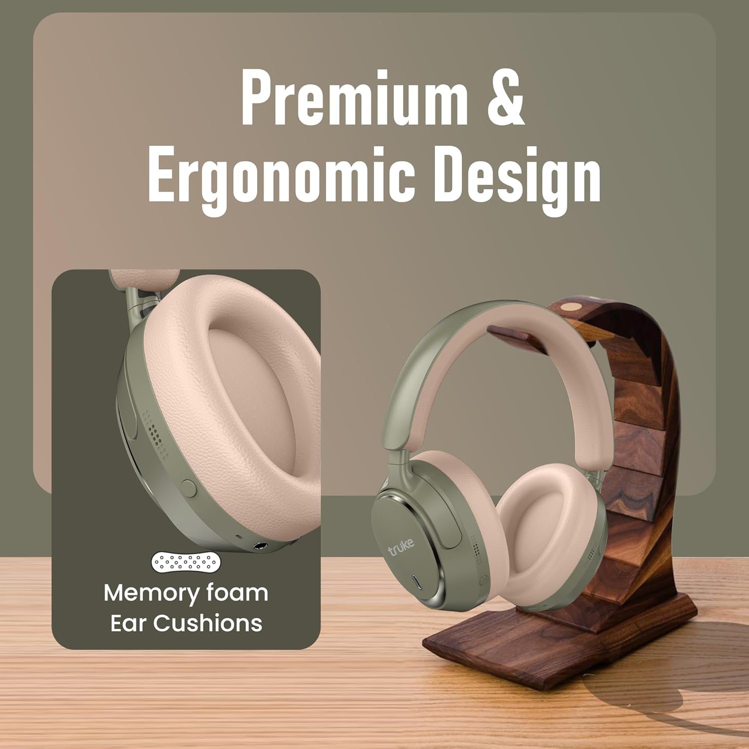 truke New Launch Aura Bass V2 Over The Ear Headphone with 50H of Playtime, 40mm Titanium Drivers, Dual Pairing Headset, 40ms Ultra Low Latency, ENC, Premium Design & Comfort – Forest Green