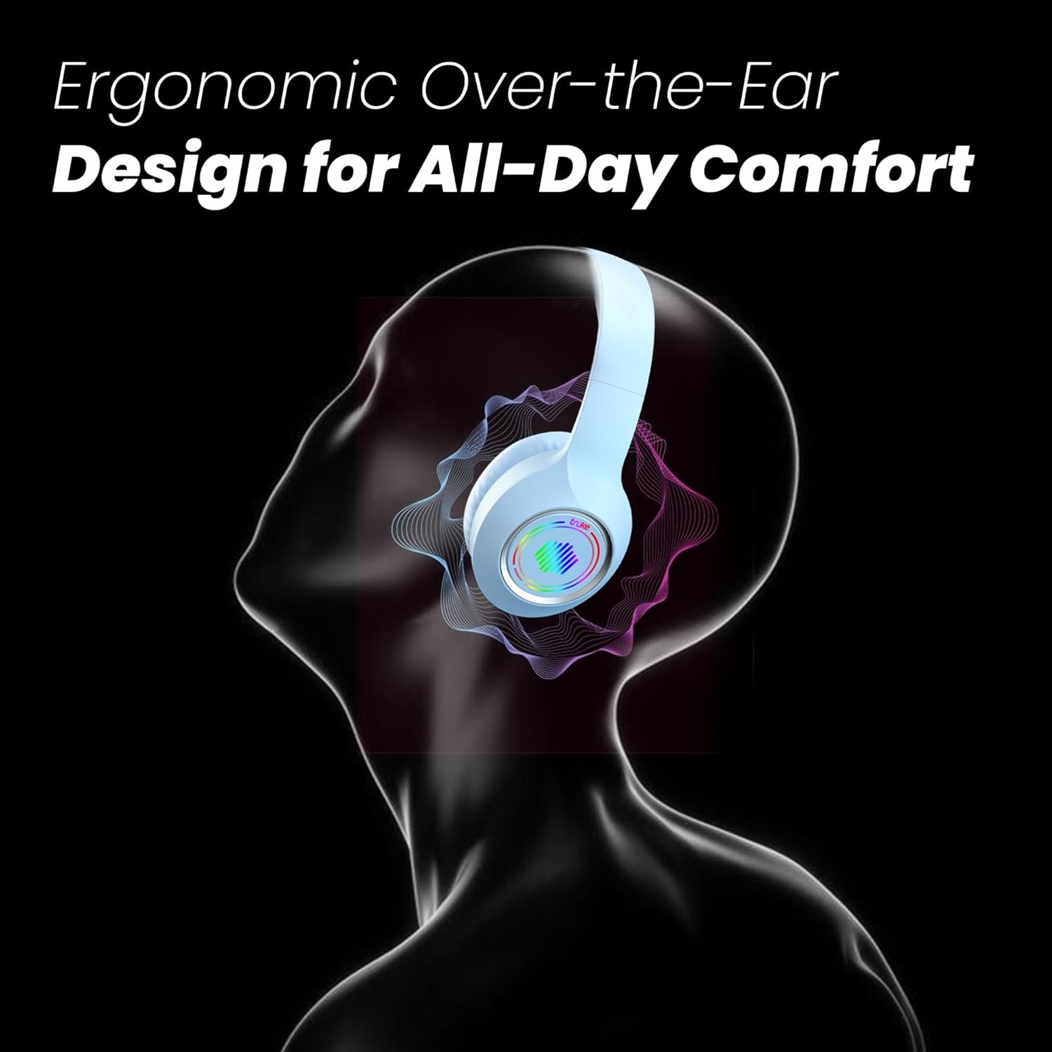 truke Newly Launched BTG 500 Over The Ear Gaming Headphone with 40mm Drivers, 10H of Playtime, Dual Pairing, Gaming Mode (50ms Latency) with RGB LEDs, TF Card with Volume Control, BT 5.4 (Sky Blue)