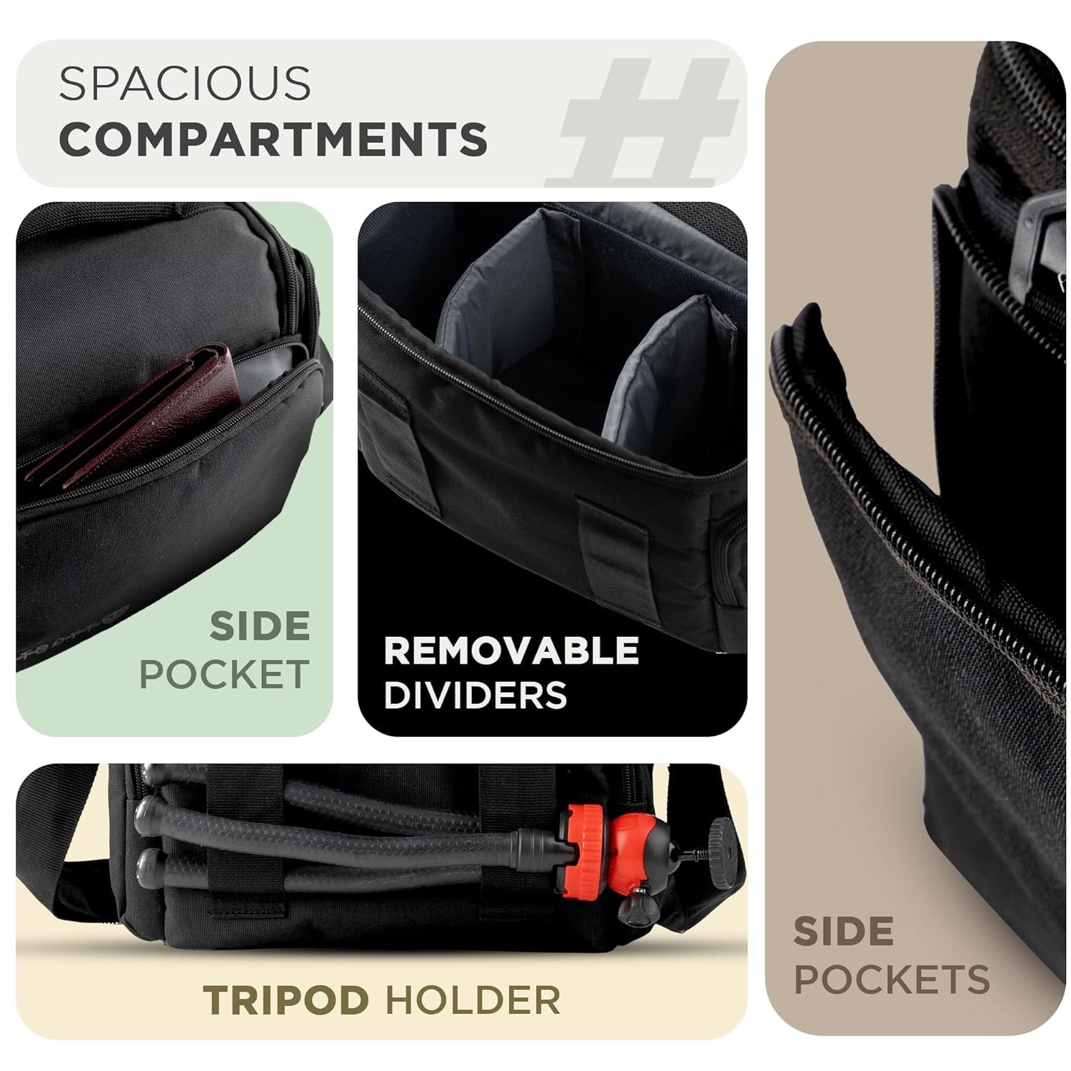 Pros:1.Water Resistance: Perfect for outdoor shoots in unpredictable weather. Kept my gear dry during rain and splashes.2.Durable & Protective:Padded interior and rugged exterior absorb shocks, while sturdy zippers and reinforced stitching ensure longevity.3.Customizable Storage:Adjustable dividers and multiple compartments fit DSLR bodies, lenses, flash, batteries, and accessories.4.Compact Yet Spacious:Sleek design doesn’t compromise on space—ideal for travel without looking bulky.5.Affordable Price:Offers premium features like water resistance, padding at a budget-friendly cost.Cons:1.Limited Color Options:Only available in black and silver may not appeal to those wanting vibrant choices.2.Buckle Material: Buckles are made of plastic instead of metal which raises concern on longevity of buckle.