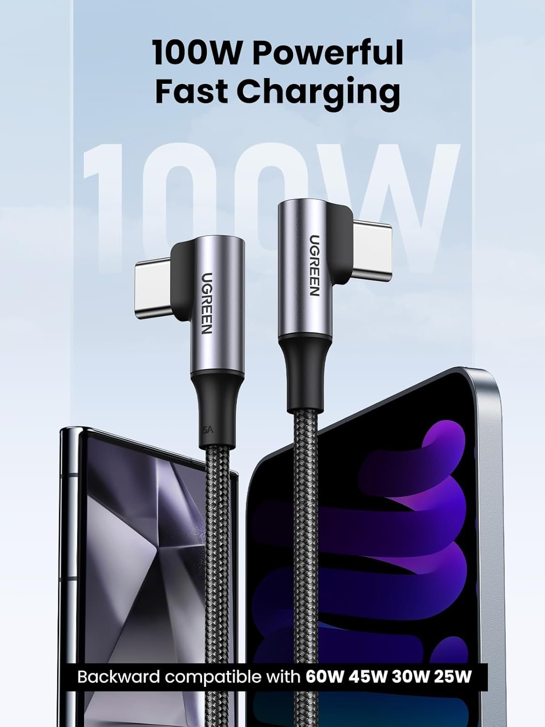 What you get: 1x UGREEN 100W Right Angle USB C to C Cable.