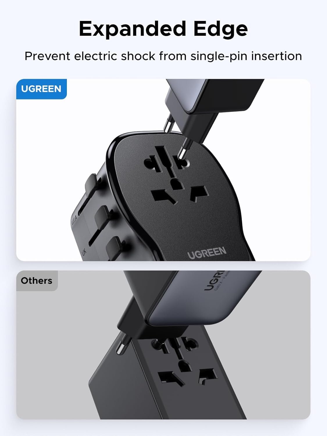 Expanded Edge: For easy plugging and unplugging, prevent electric shock from single-pin insertion. Note: Check Required Voltage and Power Before Use.