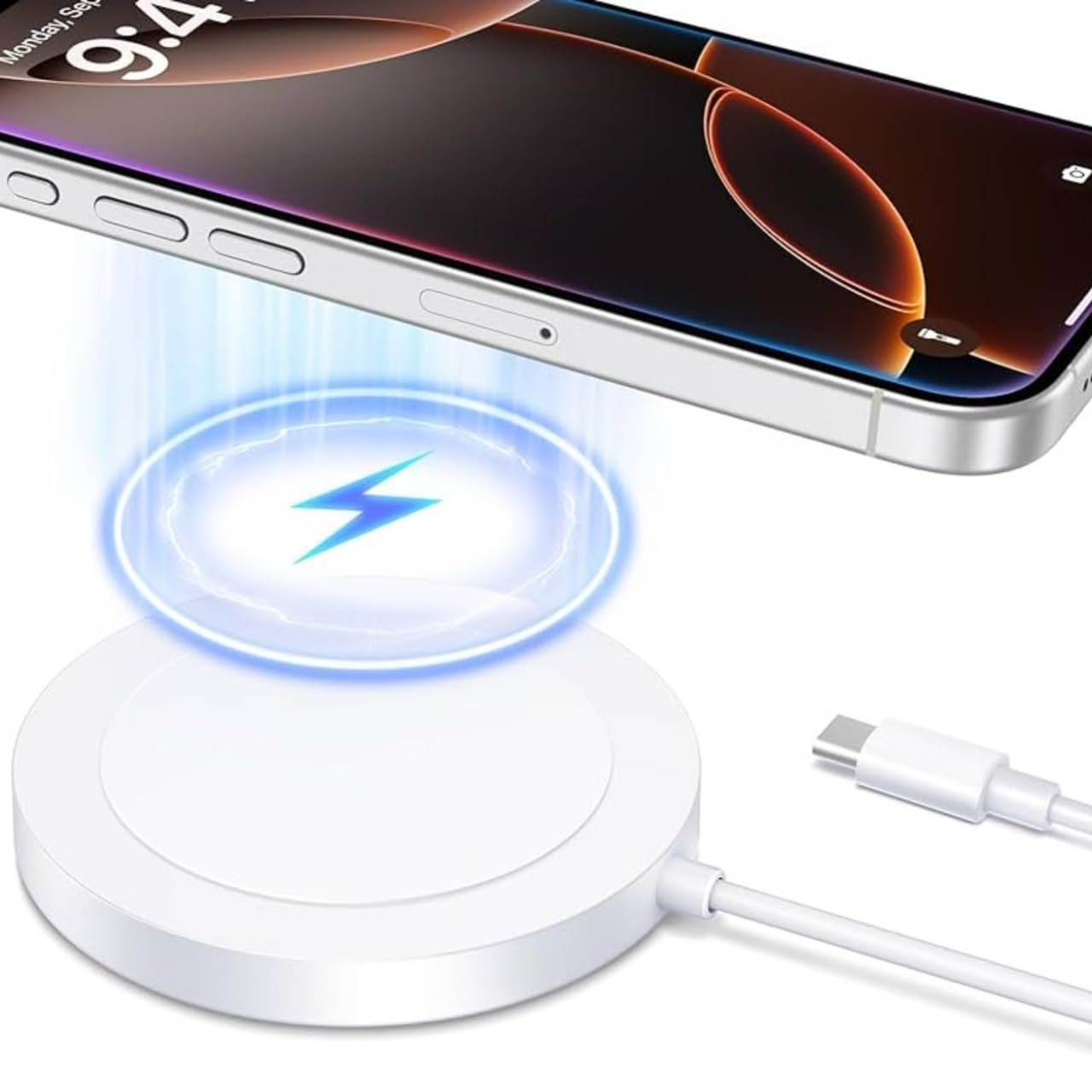 🔋0% TO 50% IN 30 MINUTES – 15W turbo charging (3X faster than 5W pucks) – fully charges iPhone 15 Pro in 1.8 hours.
