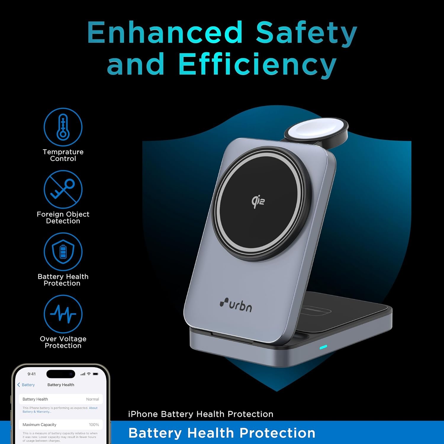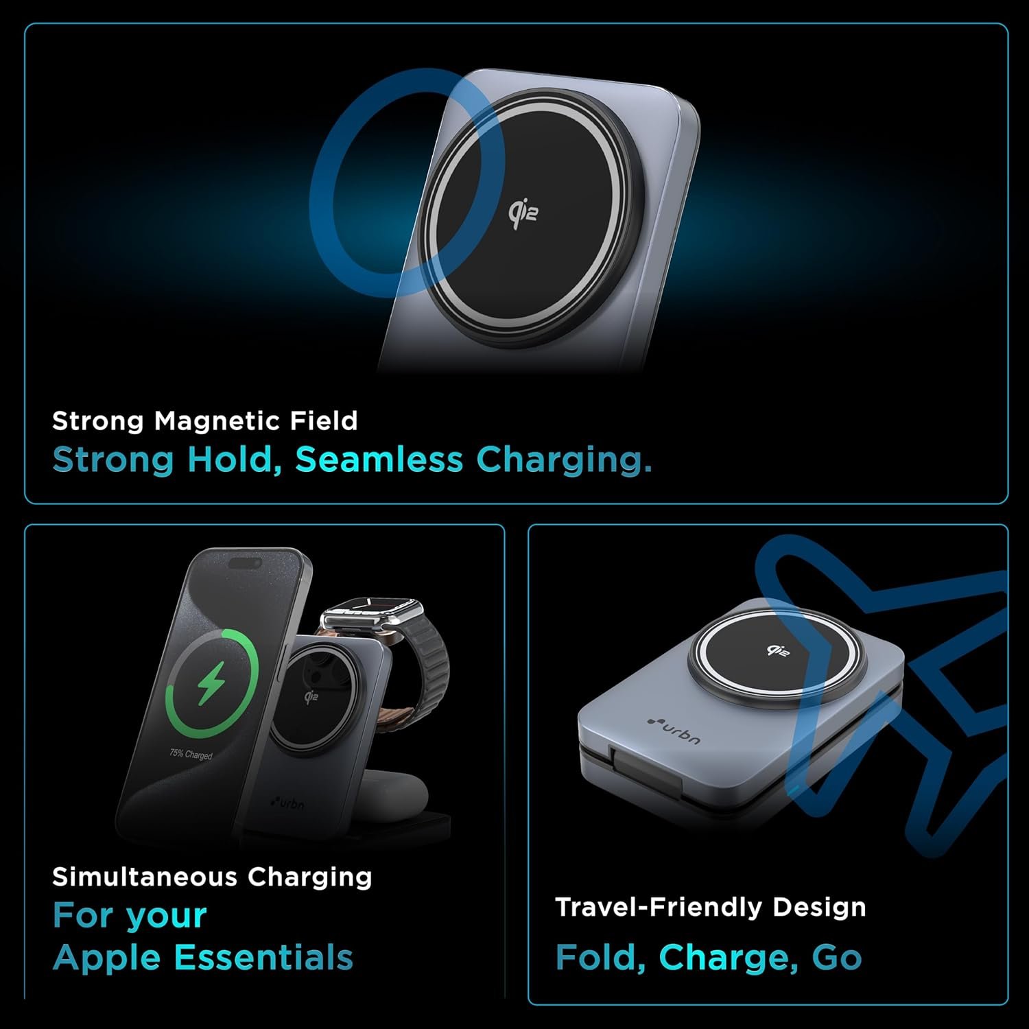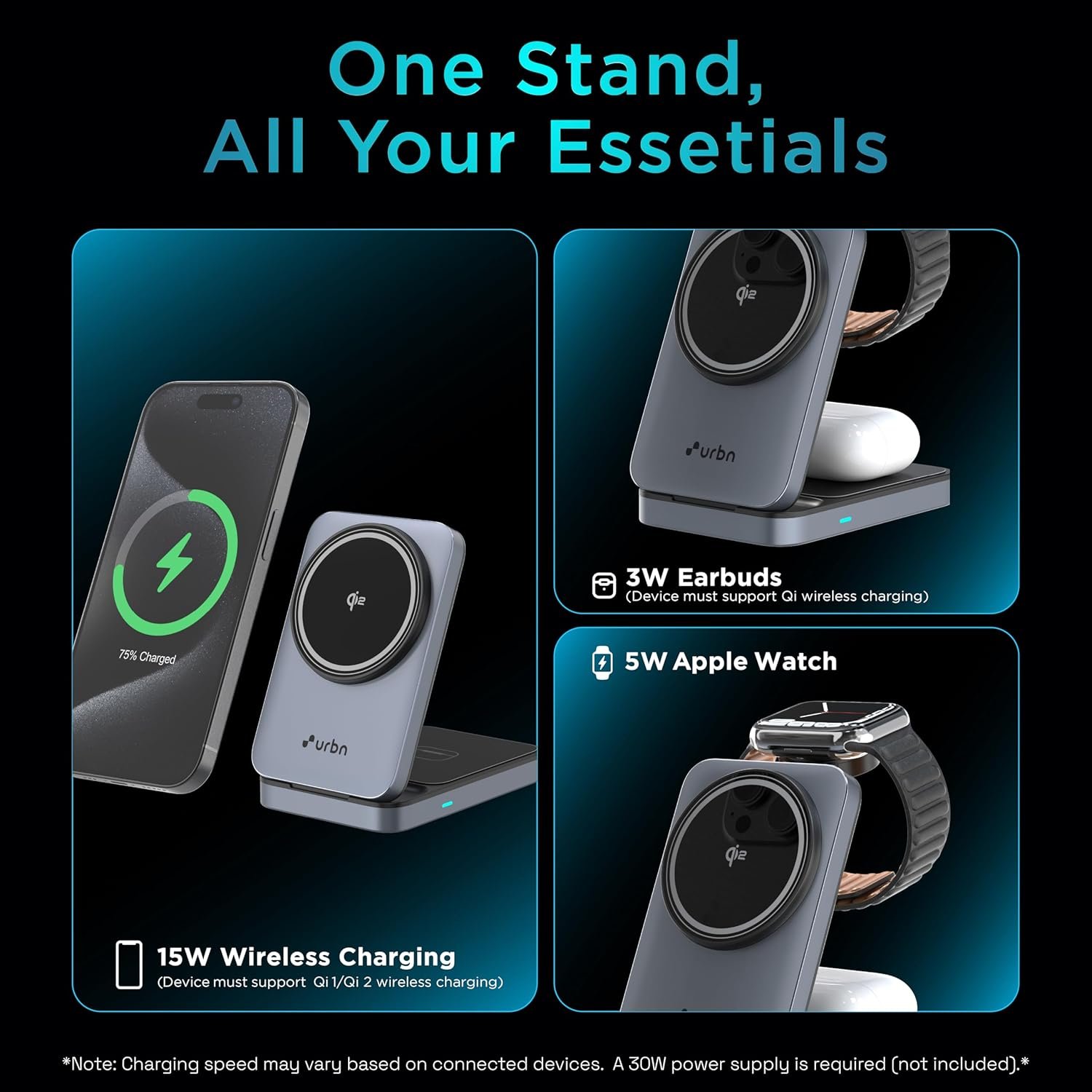 This URBN wireless charger is super convenient. It charges my iPhone, Apple Watch, and AirPods at the same time without slowing down. The MagSafe hold is strong, and the foldable design is great for travel. Charging is fast and the build quality feels premium. Totally worth the price!