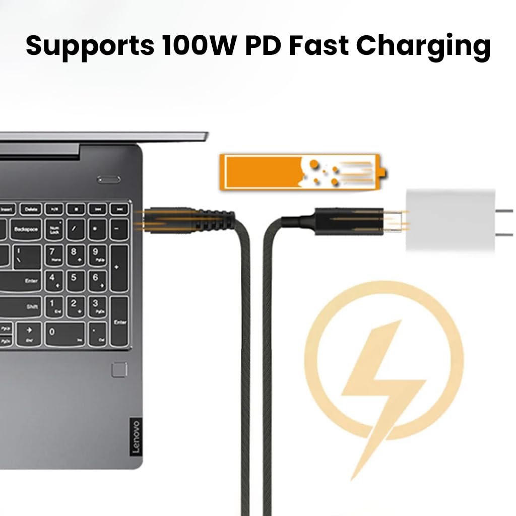 100W POWER DELIVERY WITH LENOVO SQUARE CONNECTOR: Supports up to 100W for fast charging, making it highly practical. Designed to use a Type‑C PD charger to power laptop devices, this USB Type‑C for DC male plug converter cable allows you to connect your laptop to a PD charger.