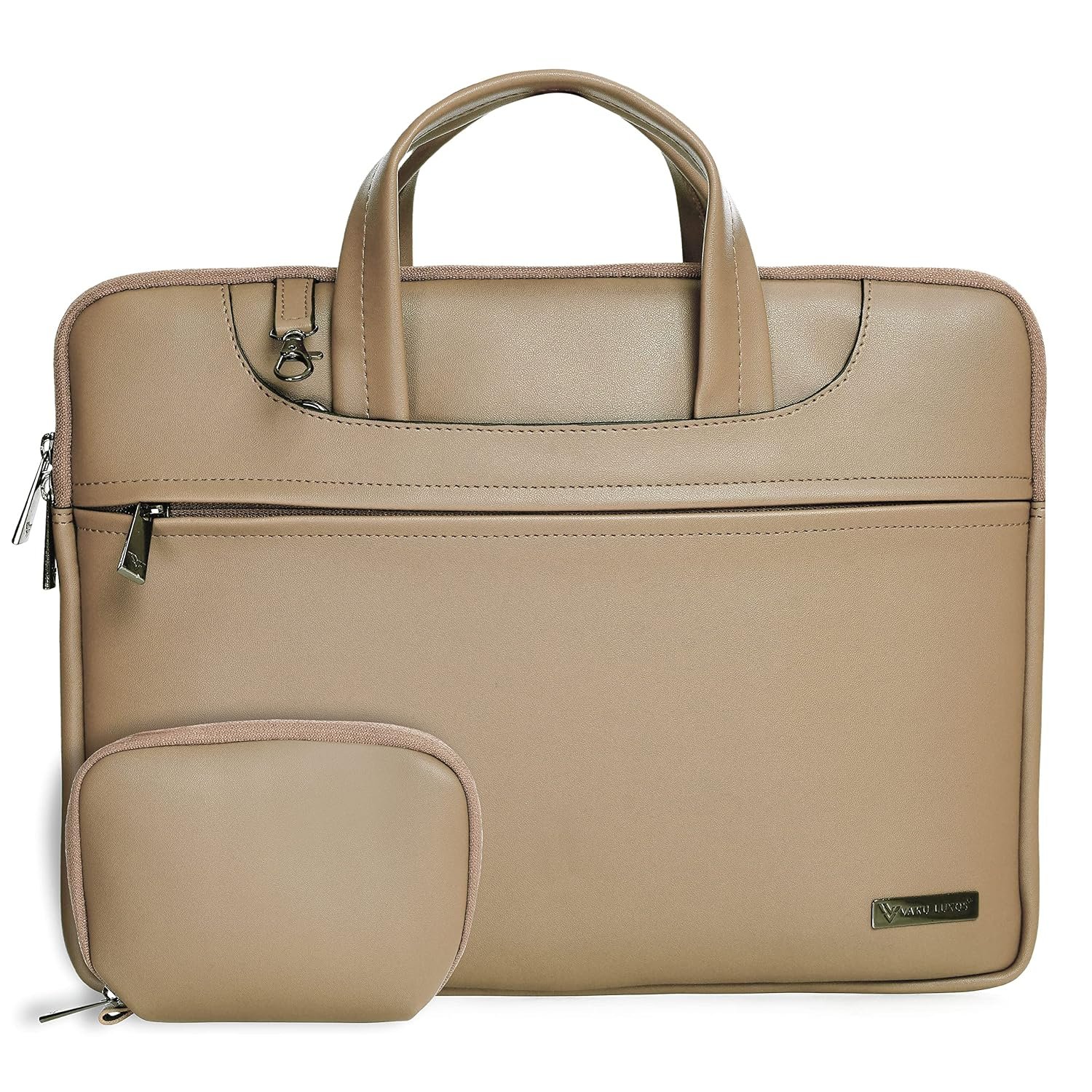Professional Carrying Bag – VAKU LUXOS Laptop bag comes with PU Leather & Polyester adjustable strap which can be removed easily, included trolley strap makes it easy to stack this case onto rolling luggage and with 4 internal pockets for your accessories and two different compartments for your laptop, books, files and etc and an extra Hard disk cover.