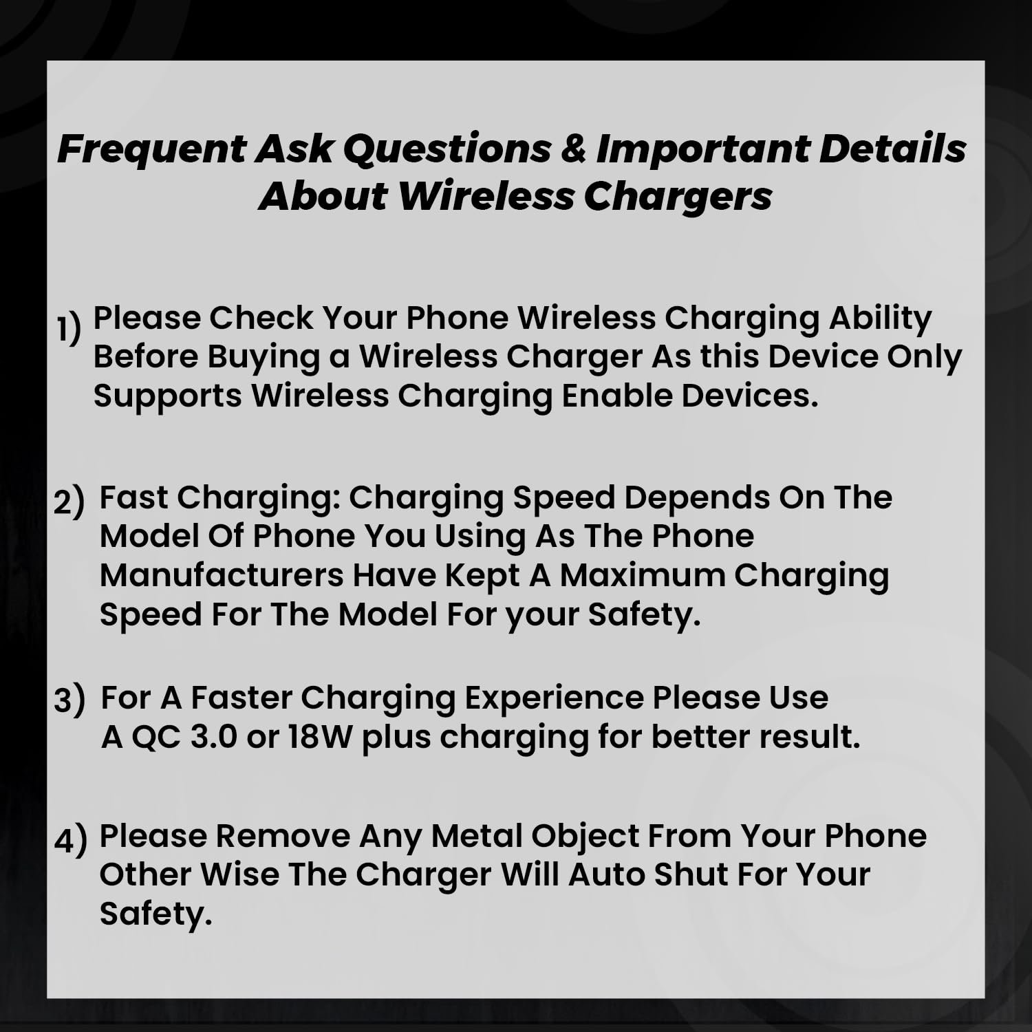 【Improved Security and Durability】Our Wireless Charging Pad features advanced FCC certification and upgraded chips, ensuring temperature control, voltage protection, and prevention of short circuits, ensuring both efficiency and safety during charging. Moreover, furnished with a specialized magnetic isolation sheet, it emits no radiation, prioritizing the safety of you and your family.