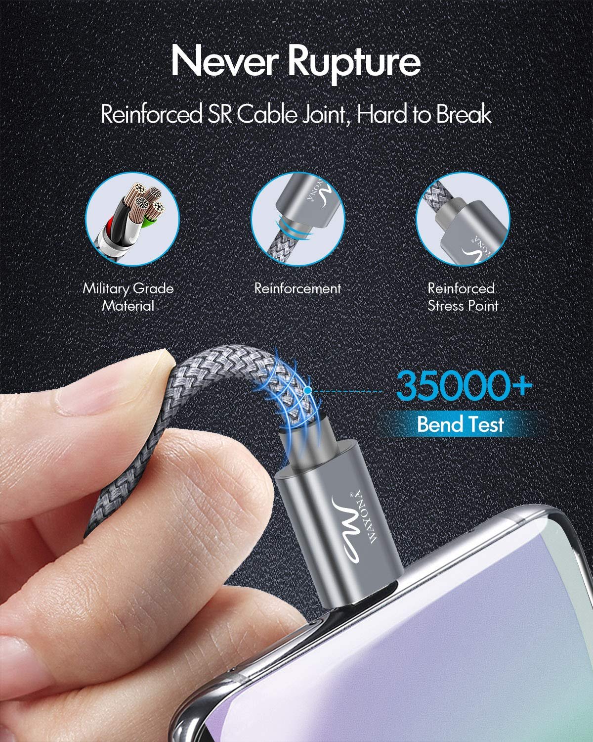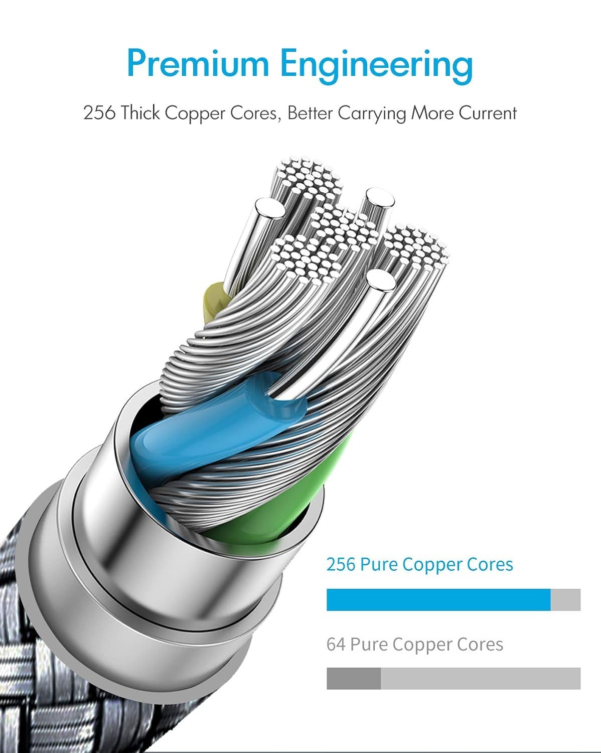 Transfer music, movies, and photo albums in secondsNylon braided, using high quality copper, multi-layer signal shielding layer.Adds strong military fiber, can withstand 15000+ bending, and there is no need to worry about entanglement, which can effectively extend cable life.With the fastening tape for organization, you can shorten the cable to any length you want and even organize it to a portable size that can put in your handbag or backpack.