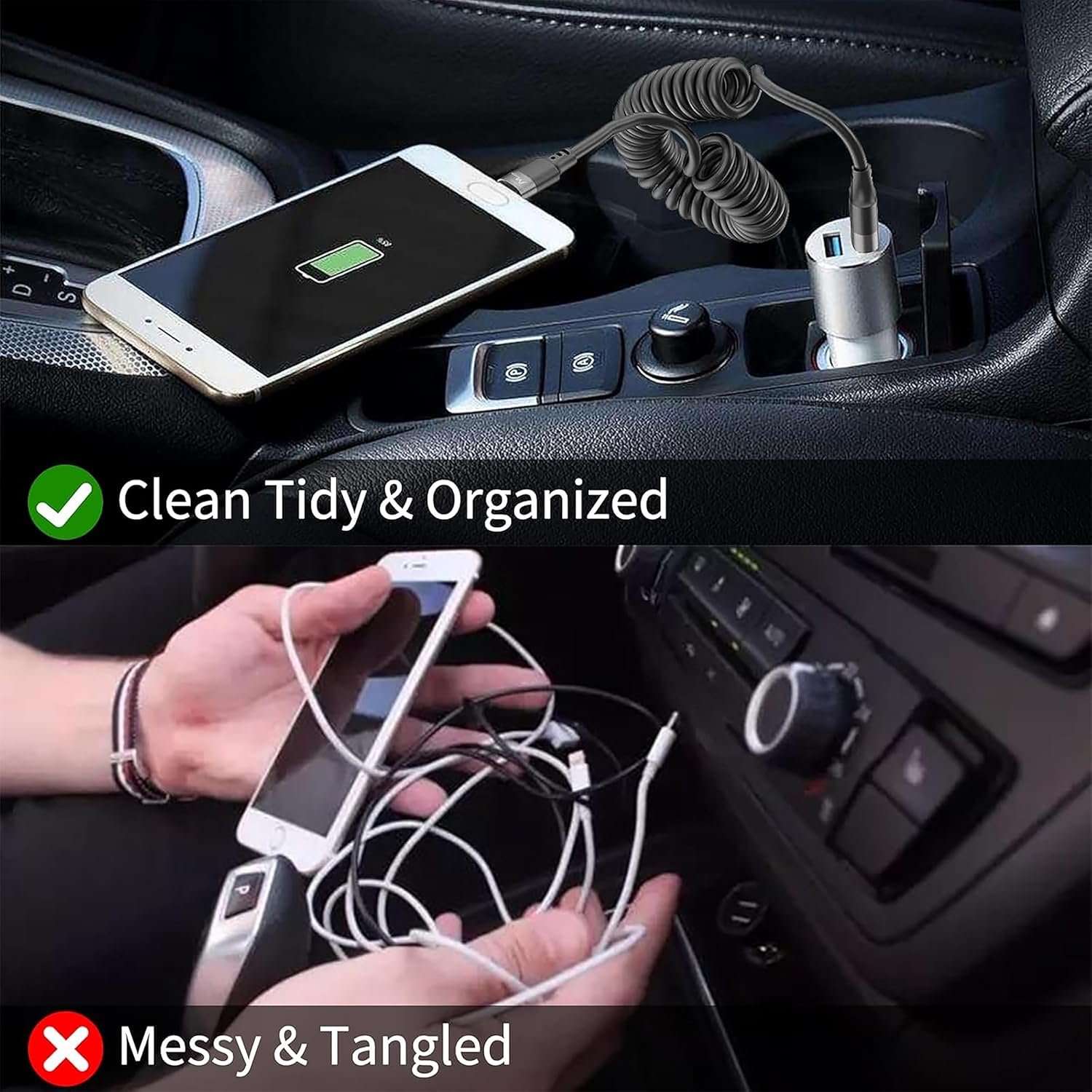 Elastic Coiled USB C to USB C Cable Made for Car: The USB Type-C cable is designed with stretchable, no tangle, no knot, and does not take up space. This coiled USB-C to USB-Ccharging cable is made of upgraded high quality PU material, which is flexible, easy to stretch, effortless, quick to rebound and not easily deformed.