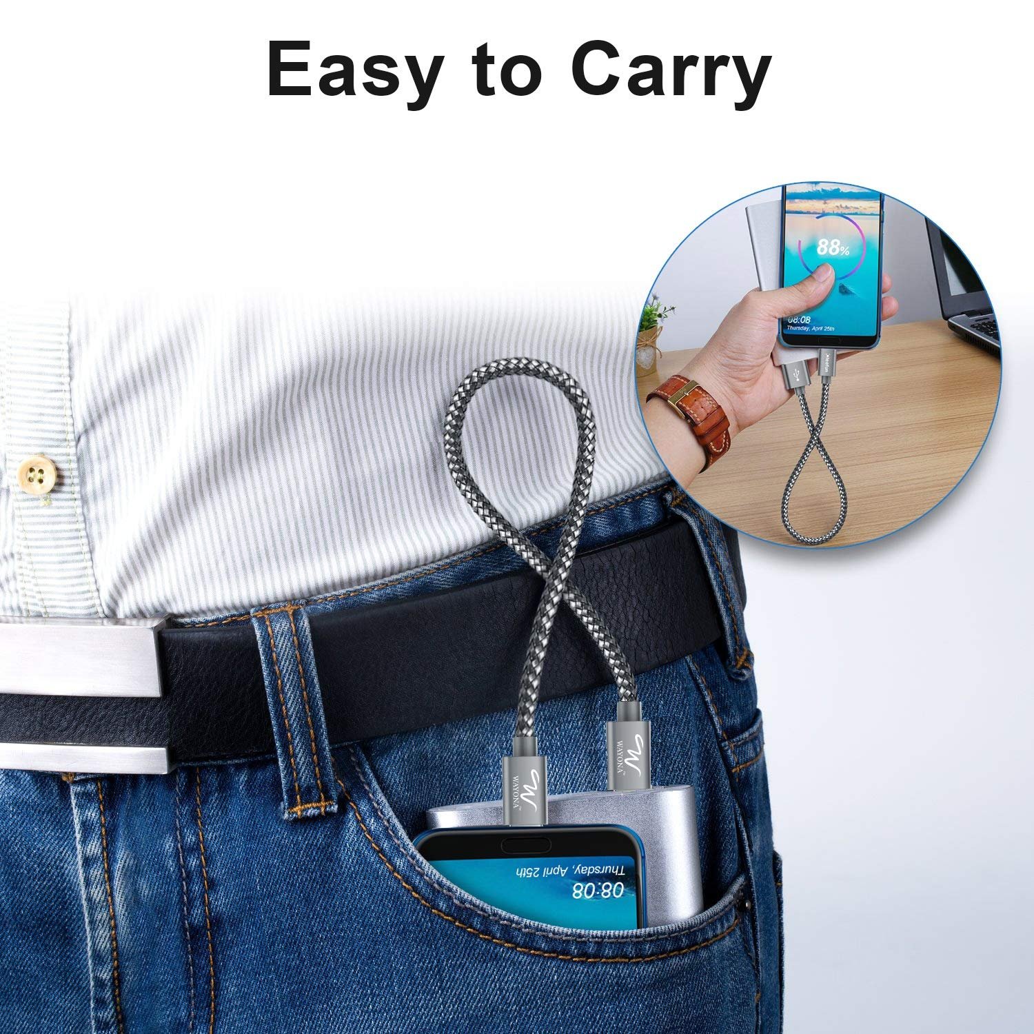 WAYONA USB C to USB C 65W Short Nylon Braided Fast Charging Cable for Powerbank, Mobile, Laptop, Car etc.