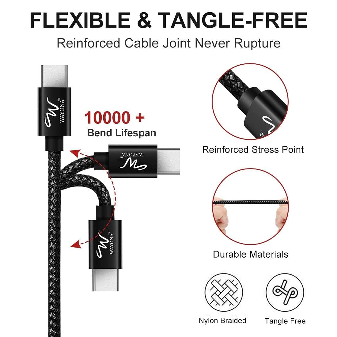 [12 Months Warranty] : WAYONA promise the reliable warranty for your top rated USB Type C cables, please contact our service team any time if you have any question or need any help regarding product.