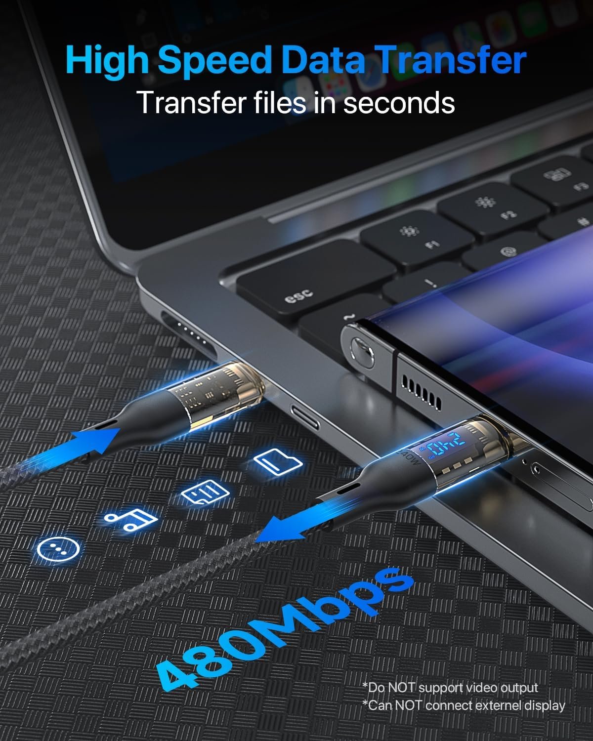 Outstanding Charging Output & Data Transfer: This WeFly USB C to USB C cable supports 240W(max 28V 5A) fast charging and 480Mbps data transmission speed. It also supports Super Fast Charging for Galaxy S23/S22 while using an original charger. All for creating a satisfying charging experience that beyond expectations to you. (Note: It does not support video output.)