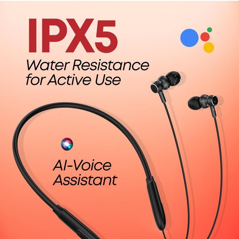 Ergonomics with a lightweight sturdy built (just 26gms) | Wireless Earphones with mic & Bluetooth 5.3 for seamless 10-meter connectivity, Quick pairing, Dual-device paring & broad compatibility.
