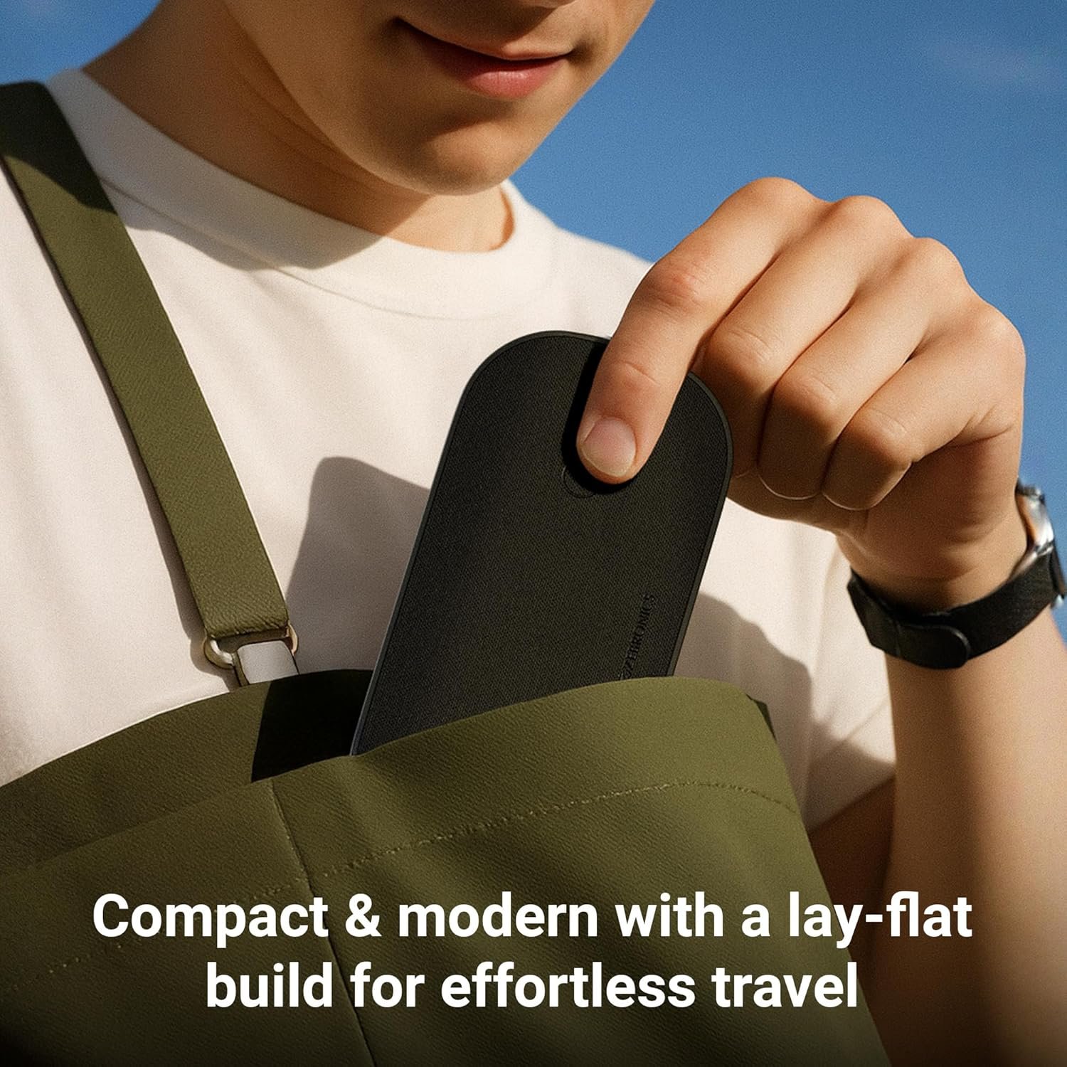 Combining a refined textured design with an LED indicator, this compact wireless charger offers effortless portability for travel.