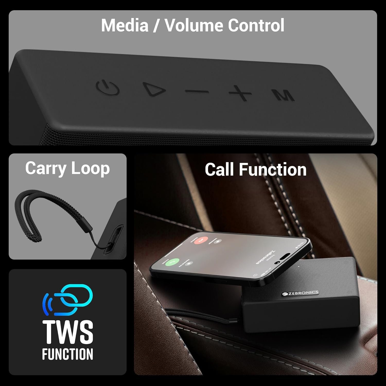 Call function: Enjoy longer hours of call with your friends using the ZEB-Sonic Pod S speaker with its calling function