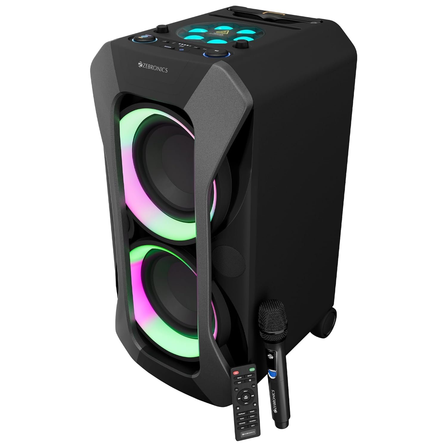 Worthwhile productPros1. Big and look good2. You can feel the bass thump3. RGB lighting is good, just better then the previous Roxor4. Wireless mic is okay, don’t think it is for Karaoke but public speaking only.5. The audio is better than previous Zeb speaker espcially Roxor and other cheaper brand speakers.Cons1. Offsite warranty, meaning taking the speaker to service center and who will take these big boxes there. The warranty should be onsite only.2. The biggest drawback is the confusing and difficult operation or running of the speaker, you will find difficult to run or and setting the speakers. The remote is actually required to run the speaker which doesn’t suits the name of Zebronics.3. There’s no LED to indicate easily that in which mode it is. No LED is the main factor of all the confusing. This is basically not a pro or an upgrade but downgraded from the last version.4. Unworthy price, with the given features and difficulty in handling the speaker, the price should be approx 8-9K, this doesn’t evey worth of 10000/-5. Running on battery impacts the sound quality of the speakers, on direct current it works as usual but if you switch to battery mode, the quality of sound reduces quickly.6. I didn’t find the quality of sound as Dolby Audio, don’t know why Zeb is advertising it.