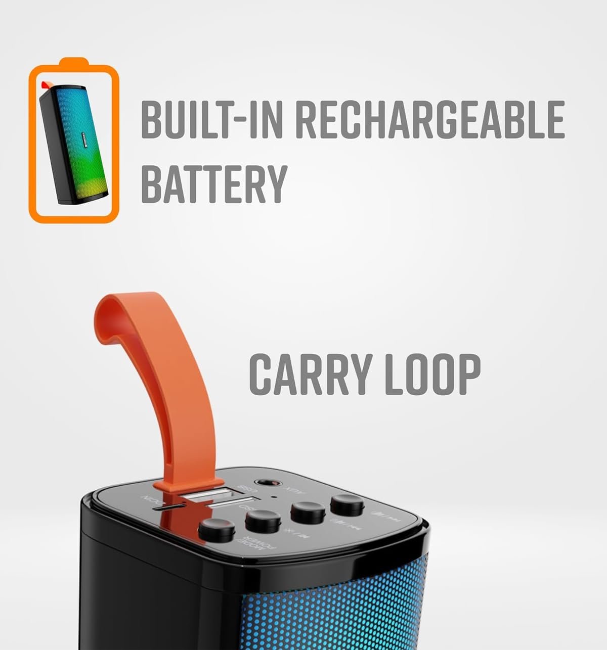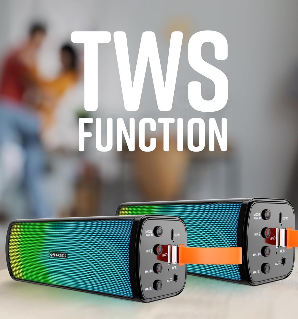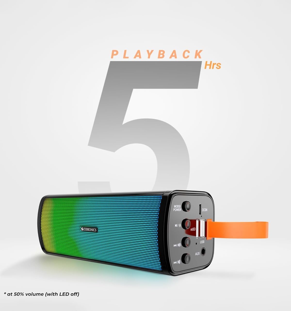 Zebronics Zeb-Vita (WITH RGB) Portable Bar speaker with Bluetooth Support. 100Hz-18kHz;It supports USB Aux input and Micro Sd card. It has Built in Fm radio for convenience, Built-in rechargeable battery