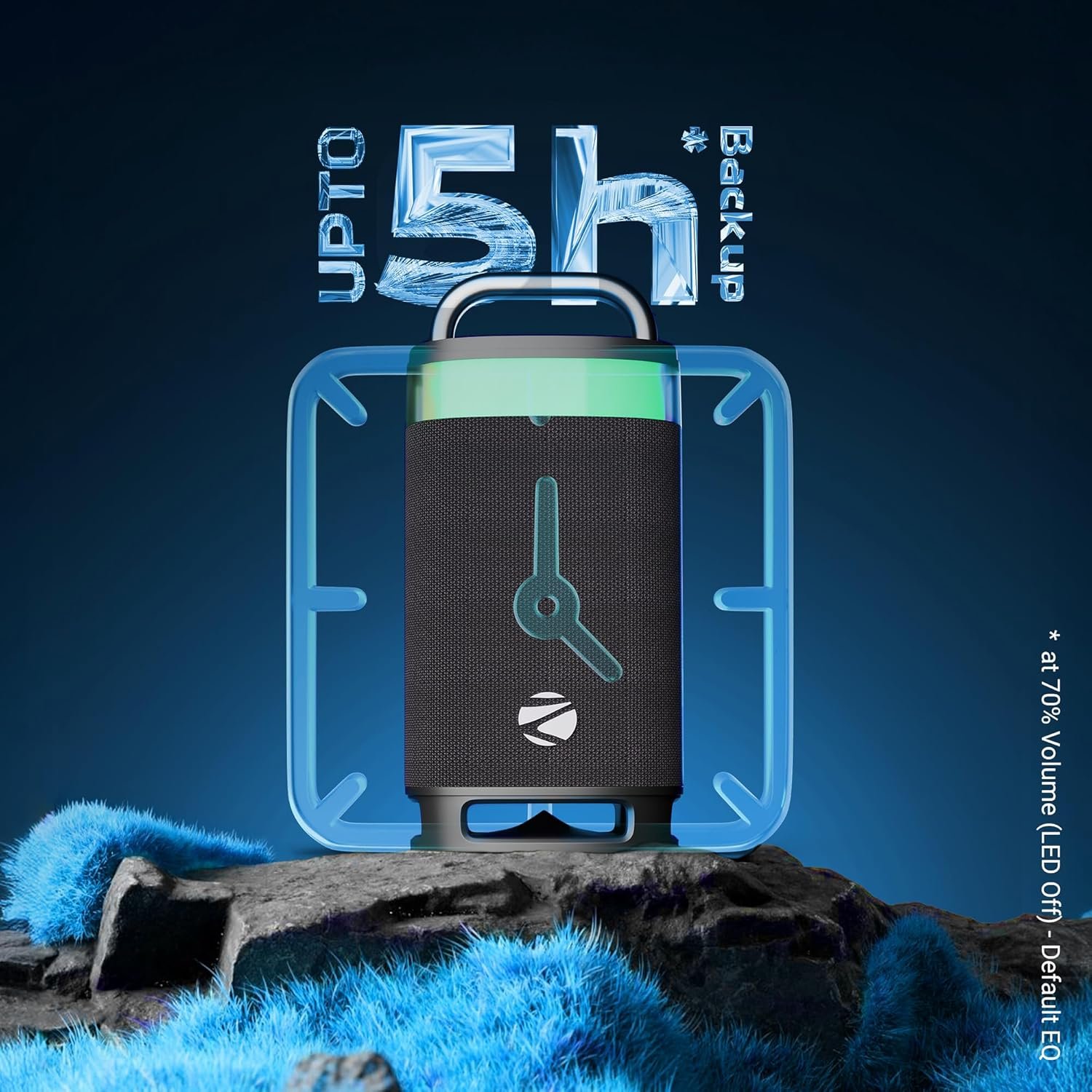 RECHARGEABLE BATTERY: Equipped with a built-in 5000mAh battery, this speaker allows you to take it anywhere as you can enjoy the music for up to 5* hours (*@ 70% volume with LED off & default EQ) of backup.