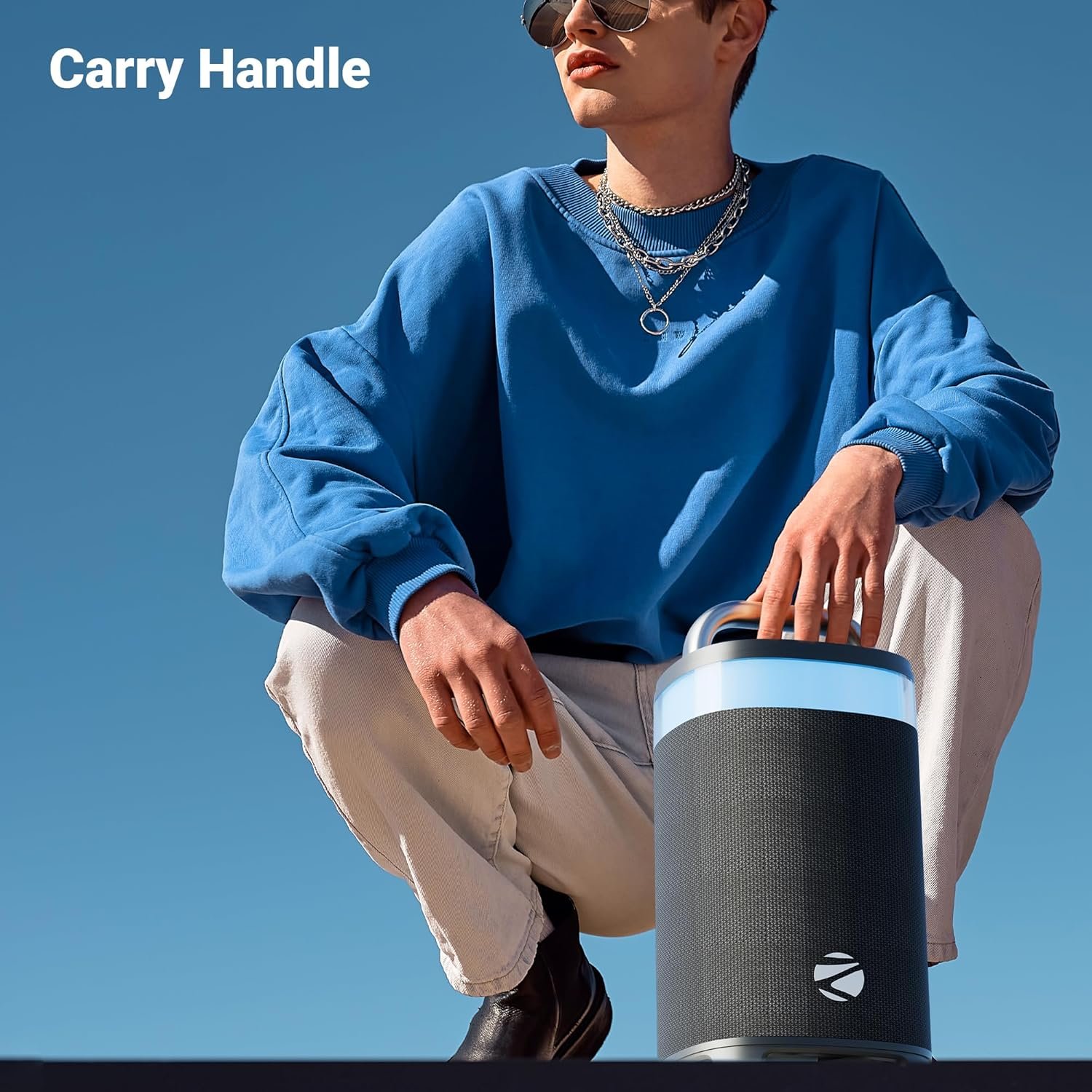 Built-in handle makes it easy to carry the speaker for workouts, trips, and outdoors