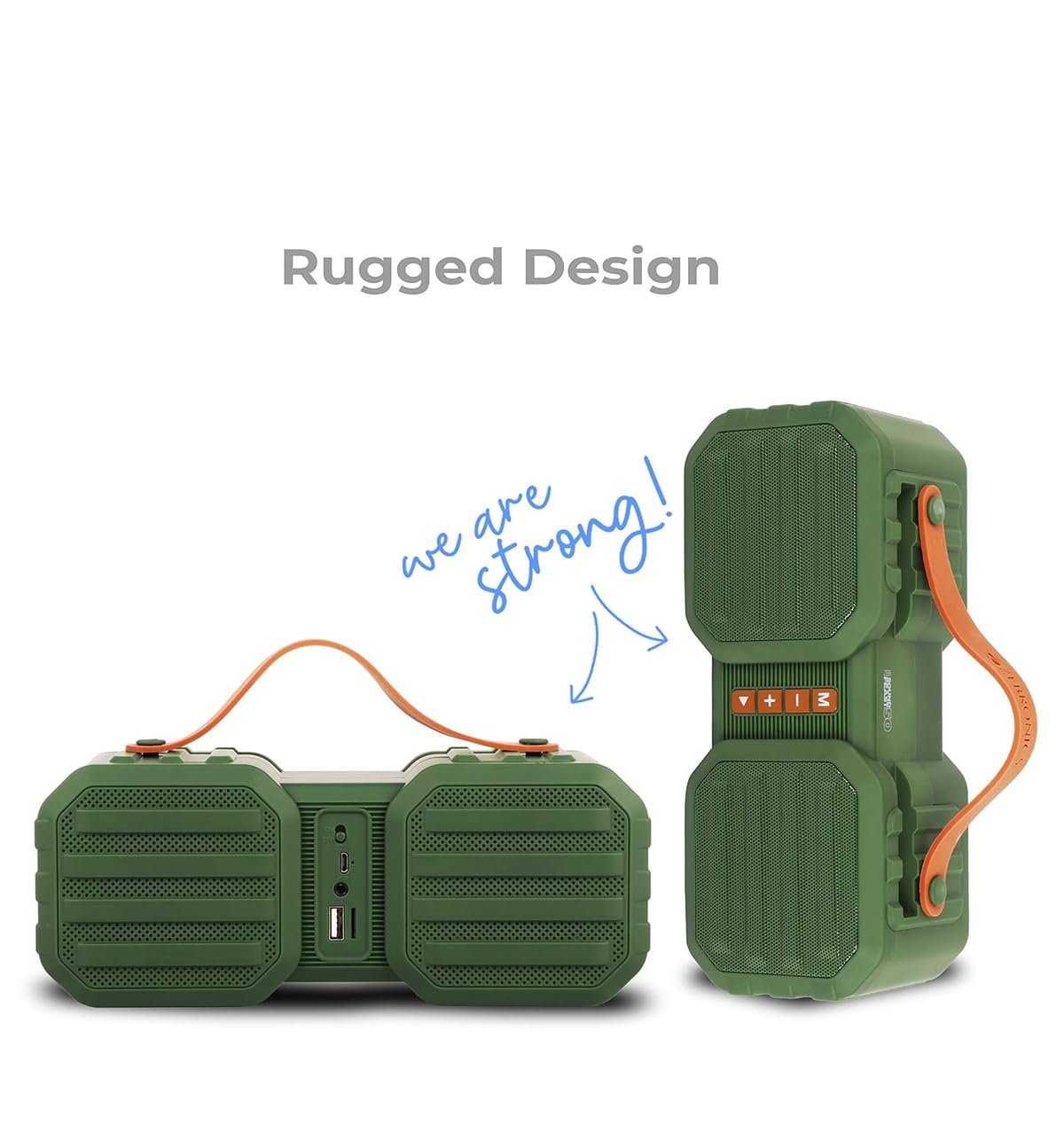 The wireless portable speaker comes with a rugged finish that adds an element of style.