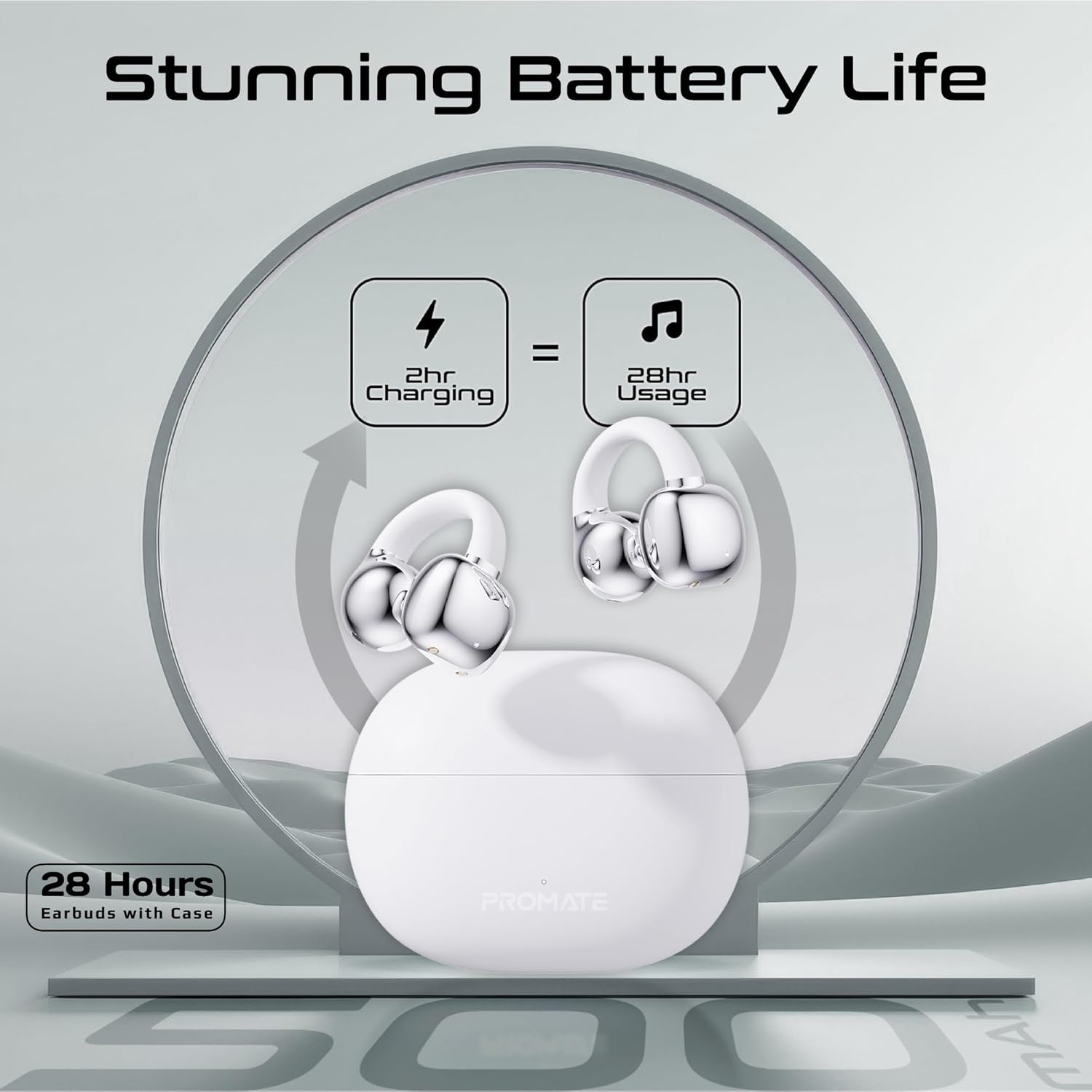 Promate True Wireless Earbuds with OWS Technology, IntelliTouch Control, Ergonomic Open-Ear Clip Design, 28-Hour Playtime, 500mAh Charging Case, Water-Resistance, and AudioFit Stability AirClip