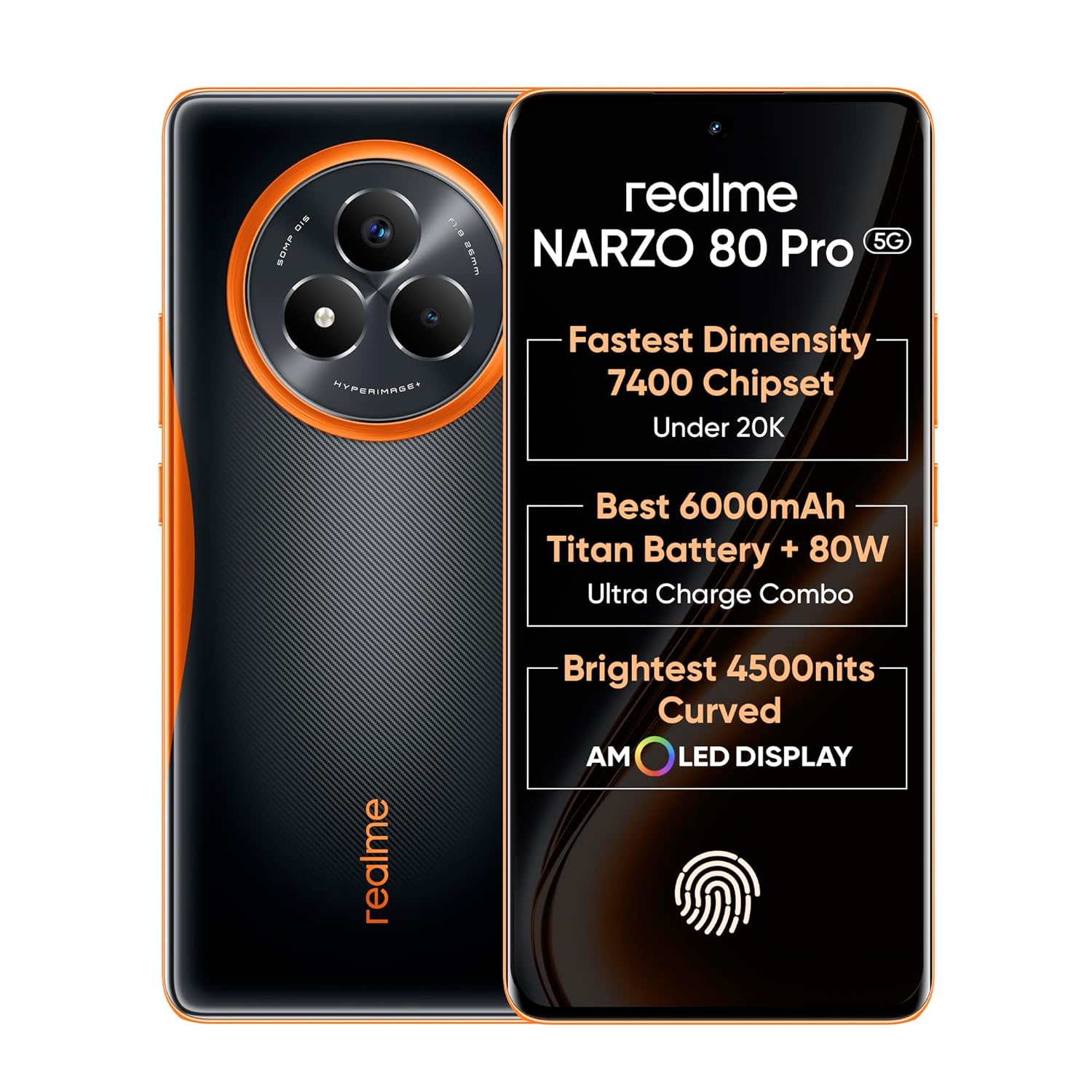 realme NARZO 80 Pro 5G (Nitro Orange,8GB+256GB) | Segment’s 1st MediaTek Dimensity 7400 Chipset | 6000mAh Titan Battery + 80W Ultra Charge | 4500nits HyperGlow Esports Display | IP69 Waterproof